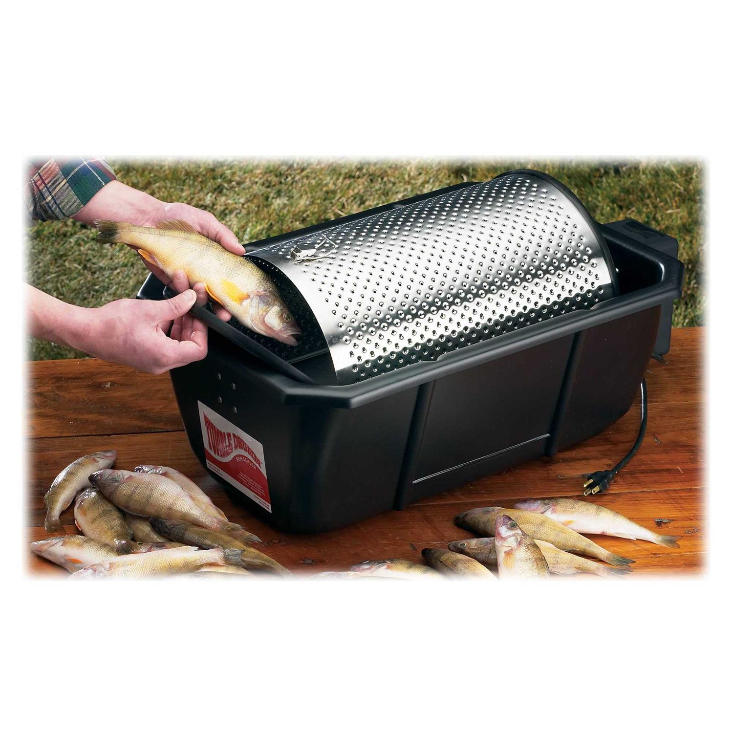 - Tumbling action gently removes scales leaving fish clean and undamaged