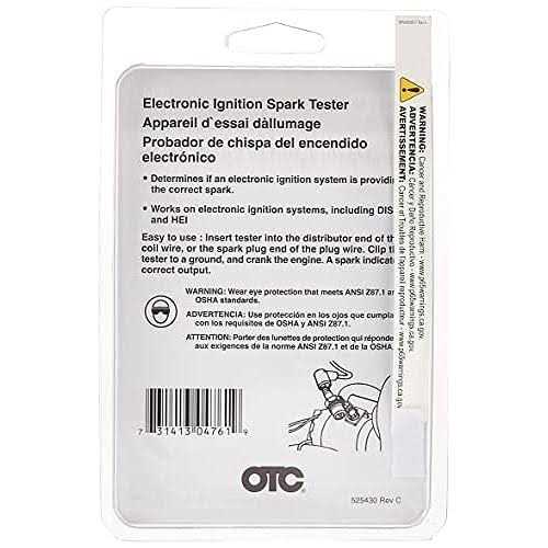Ignition Testers by OTC. Details:Simple, high quality tool designed to test high energy electronic ignition (HEI) systems. Simply attach plug wire to end then use built in clip to attach to ground. Tester will give you true spark performance results, helping you identify ignition anomalies that simply removing a plug and grounding it won’t reveal. For use on vehicles and power equipment equipped with a high energy ignition system. Value is at the core of the OTC tool and equipment portfolio. Whether it’s a simple repair or the most complex drivability concern, these award-winning tools universally solve problems faster, and at better value, than any other product line available.