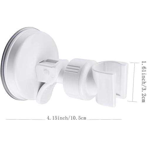 Super Easy to install: no tools need, it is self-priming installation without drilling, you only need to put the suction cup to grip the contact surface, such as glazed tile wall, mirror, glass, etc.suction cup shower head is easy to installation Vacuum adsorption principle:Super strong suction cup sucker which diameter is large 2.8-inches,the high quality of strong scalability,good air tightness of the silicone material,given it strong adsorption capacity. suction can bear 7.5 pounds maximum weight and keep it for about 1 year. Removable Design: Removable shower wand holder allows you to place the shower arm at any desired height for easy to access by relocating the shower head holder, suitable for most of shower head, but not all. Provided Adjust Angel Capacity:adjustable designed so that convenient to adjust the angle of showerhead on straight and adjust 30 degrees from the wall.The shower head holder is rotating 360 degrees . Main Materail:ABS plastic material,Light weight but heavy duty engineering grade plastic.Suction cup shower holder can be easily removed in a second & placed at a different location,improves the ability to wash freely your kids or pets. PRODUCT SPECIFICATIONS: /b /br Wall Mounted Bracket to Support Handheld Shower Heads /b /br Body Material: /b Durable ABS engineering grade plastic /br Suction Cup Shower Head Holder /br Connection Standard: /b Standard Support /br Package include: /b 1x Suction Cup Shower Head Holder /br Adjustable Angle for Large Supporting /b /br High Strength and Heat Resistant Construction ensuring quality and longevity; /b /br