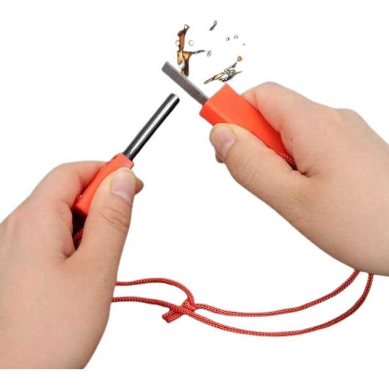 Ignite adventure with the Ozark Trail Flint and Steel Fire Starter, Model 5118, measuring a compact 0.75 inchD x 5.75 inchH x 3 inchW. This essential tool guarantees reliable fire-making in any outdoor situation. Its attached lanyard allows quick access and gear attachment. The high-performance flint bar ensures consistent sparks for easy ignition. Safety is a priority, with a built-in striker cap for spark protection. Whether camping, hiking, hunting, or enjoying any outdoor activity, the Ozark Trail Flint and Steel Fire Starter is your key to fire-starting confidence.