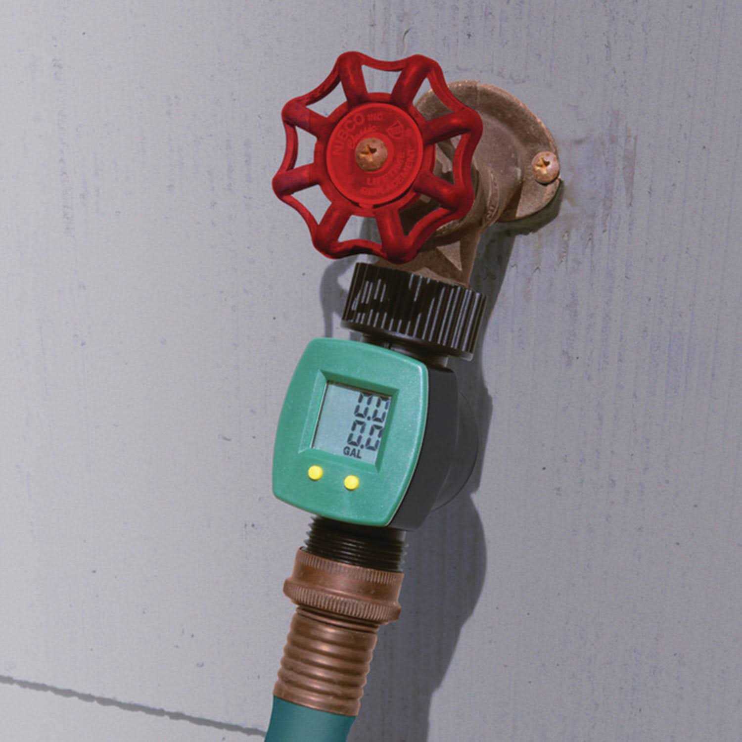 - Use the easy to read meter to measure how much water is flowing out of the hose
