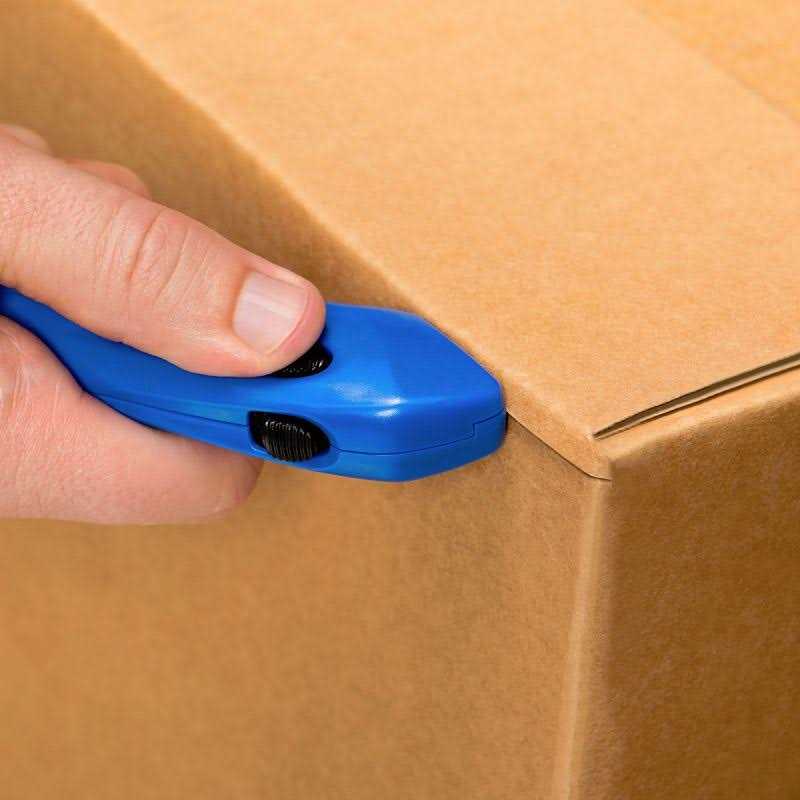 - Built-in, blade less tape slitter on the heel of the handle prevents accidents when opening containers and boxes.