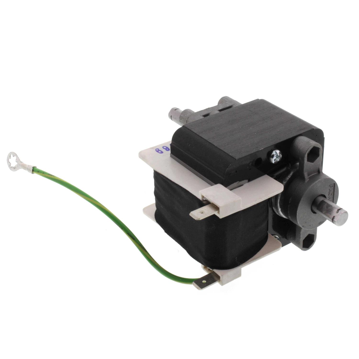 This fits carrier and is a replacement for carrier ‘s hc15zn012, hc21ze115, hc21ze117, hc21ze117b, hc660005, 310371-752, 318984-753. Emerson ‘s 3109. Jakel ‘s j238-150-037751, j238-150220. Rotom rfb212, fb-rfb212. Motor specifications are: 115 volts 1.8 Amps 3300 rpm shaded pole c frame motor ccw rotation lead end short shaft end shaft dimmensions: 1in x 5/16in diameter x 1-7/8in, flat spot on both shaft ends. 2 Male spade connectors for wires to attach to on short shaft end. Included is 2 wiring harnesses, one harness has a plug und w/ 2 male bullet type connectors, the other harness has 2 female clip type connector on the plug end. 1 Wheel included for short shaft side.