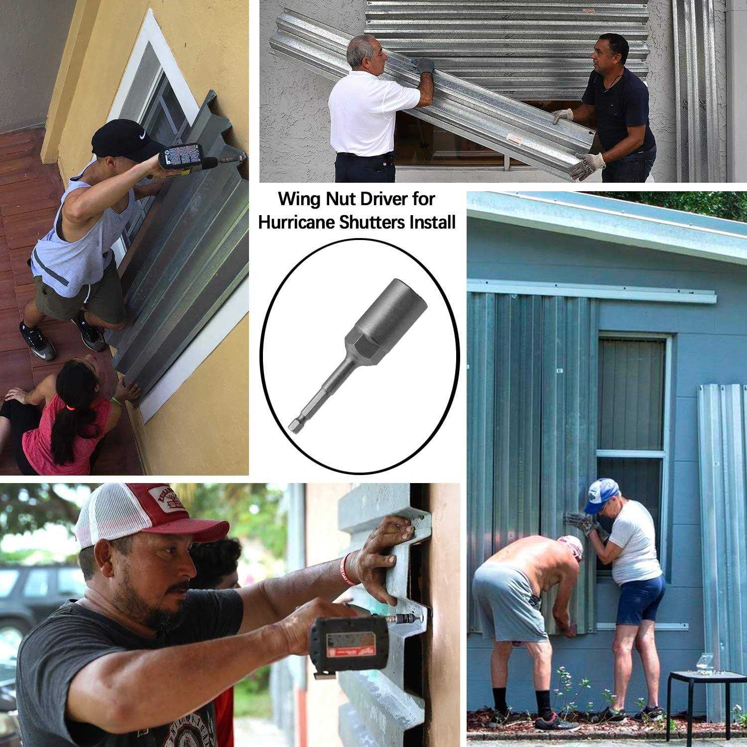 This wingnut driver designed to tighten or loosen wing nuts, bolts, hooks quickly and effectively when installing hurricane shutters/panels or doing other projects, and saves lots of your time and get your job done more faster. Just pop it into a power screwdriver and get the wing nut / shutters installed without concern about spraining your thumbs by using other hardware tools, saves wears and tears on your fingers. This Steel wing nut driver is a perfect tool that works with any power drill (1/4 inch hex shank). The total length of the tool is about 6.55cm(2.6 inch); the outer diameter of the socket is about 17.8mm(0.7 inch); and the slots on the drill bit tool is 4mm(1.55 inch) wide. This little wing nut driver is made from CR-V steel, highly strong and sturdy.