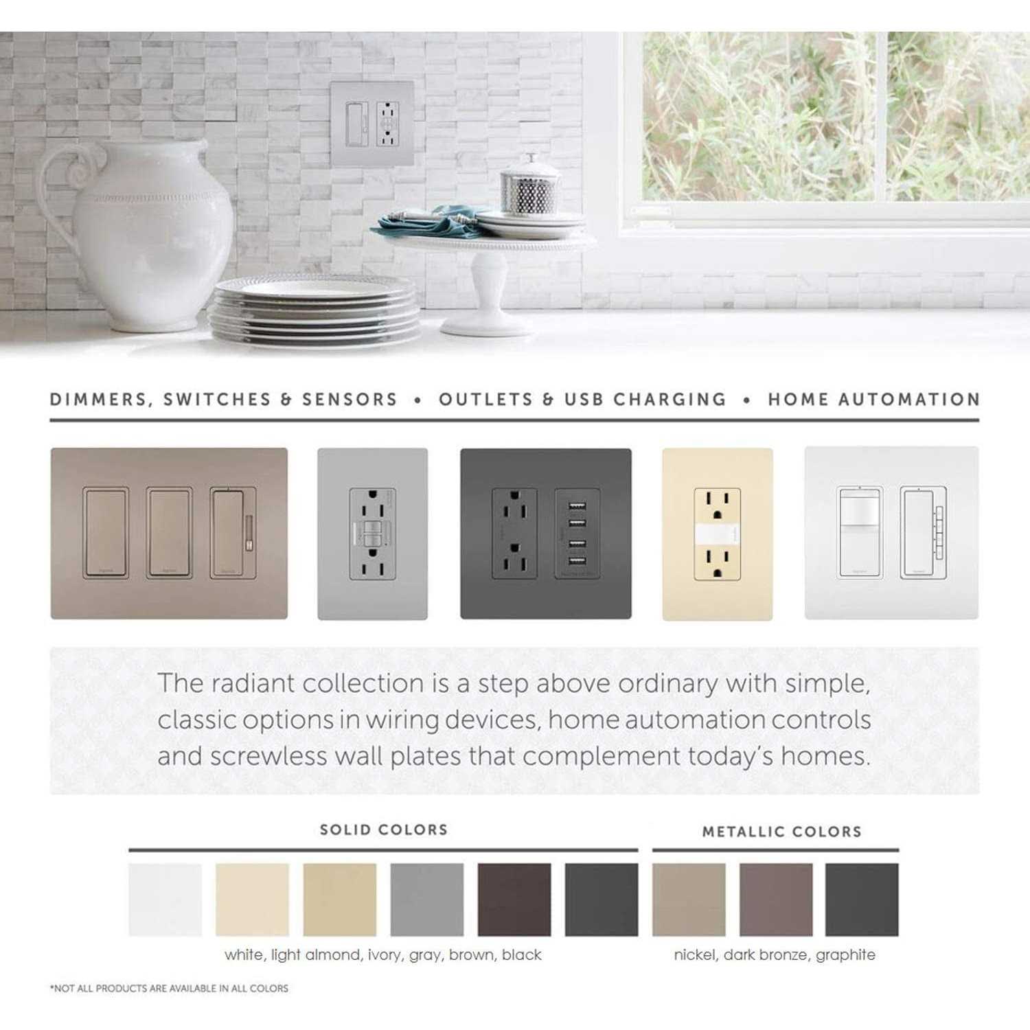 For your largest or most open spaces, a radiant 4-Way Switch enables control of a single light or fixture from three or more separate locations (working in conjunction with 3-Way Switches). Perfect for basements or multi-level rooms. Part of the radiant Collection, it features clean lines and smooth paddle action for a sophisticated touch. Made exclusively for use with screwless Wall Plates from the radiant Collection, sold separately.