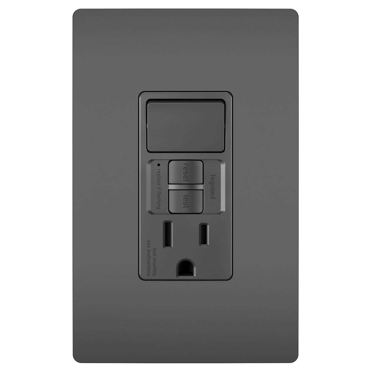 Pass & Seymour GFCI Receptacle/Single-Pole Switch, 15A, Black