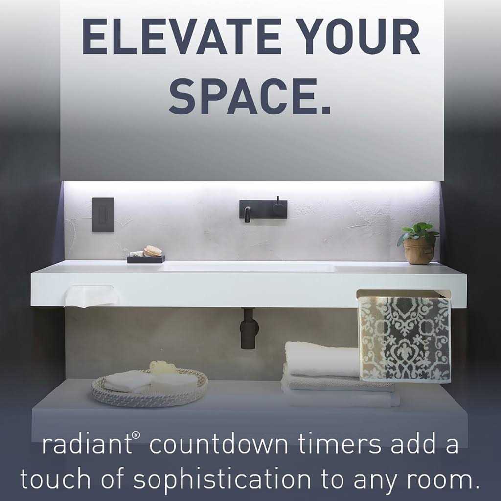 Never worry about leaving the lights or fan on, while also reducing energy costs, with the radiant 4-Button Digital timer. Great to use with attic fans, bathroom and closet lights, heat lamps, and in spaces like basements or garages. Manually turn the light on or off at the paddle switch, or use the included buttons for preset auto-off times of 60, 40, 20 and 10 minute delays. With the convenience of automated control, timers are a great upgrade for garages, laundry rooms and more. Part of the radiant Collection, it features clean lines and smooth paddle action for a sophisticated touch. Made exclusively for use with screwless Wall Plates from the radiant Collection, sold separately.