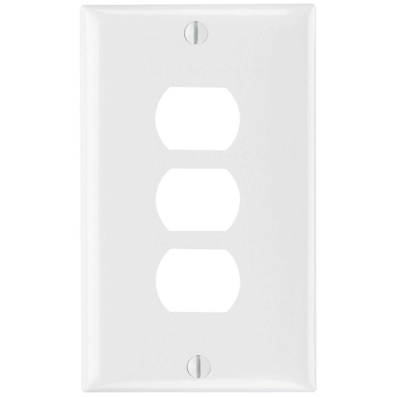 The Pass & Seymour/Legrand 1 Gang Horizontal Opening Triple Toggle Wall Plate features a smooth white finish for a clean finishing touch and is CSA and UL listed for safety. Screws are included to help make installation easy.