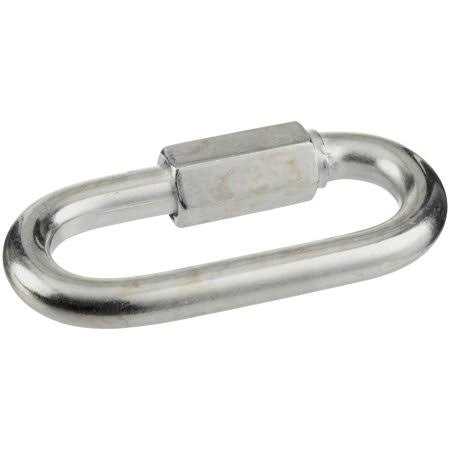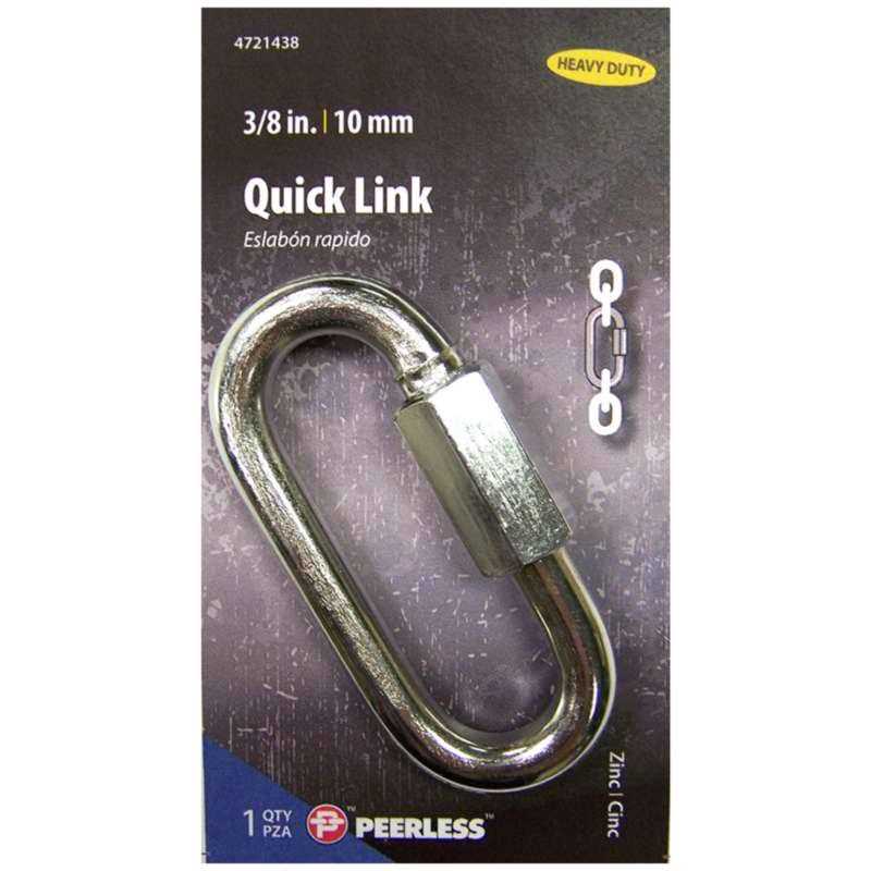 Pick up a quality hook for all kinds of versatile use with this 3/8 inch Heavy Duty Quick Link from Peerless. This 3/8 inch Quick Link from Peerless is designed for heavy duty applications, and has a load limit of 1900 lbs., so you can depend on it for a bunch of applications. It’s made from a premium zinc material that’s built for extended use, and has a quick link design for added functionality. Ideal for using with ropes, chains and straps for pulley-type applications and much more. Pick up Peerless’ 3/8 inch Quick Link today and you’ll find a bunch of uses for it in and around the home!