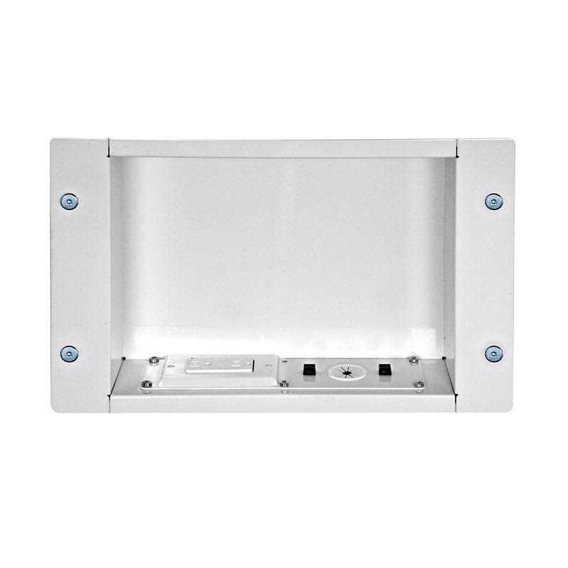 The Peerless IBA2AC Recessed Cable Management/Power Storage Accessory Box (White) is an accessory box that is designed for storing amplifiers or any audio video devices weighing up to 25 lbs (11.33kg). Equipped with a recessed cable and storage management box, the unit allows easy routing of cables and cords through walls. It includes a Smart Grid tamper resistant duplex surge outlet for adding the included 125V/15A duplex power module with NEMA 5-15R.With a low-profile design, the in-wall accessory box with cable ties and a grommet offers seamless installation that provides a clean and organized finish. You can install the accessory box between 16″ (406 mm) wood stud centers and position it vertically or horizontally to suit your living area. It offers a sturdy and durable option with a heavy gauge cold-rolled steel construction.