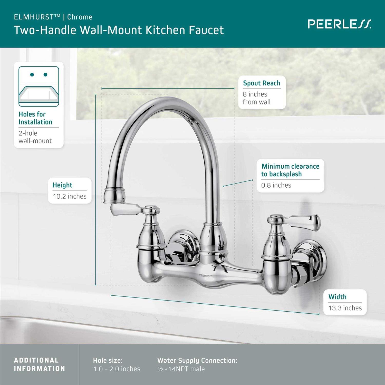 Peerless P2765LF Elmhurst Two-Handle Kitchen Faucet Wall-Mount, Chrome