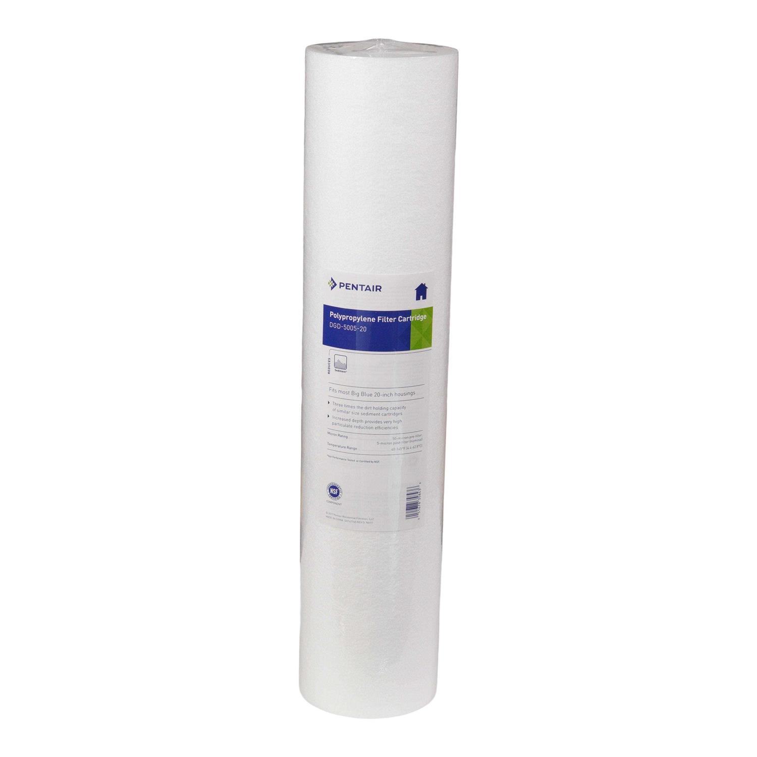 Dgd series cartridges are manufactured from 100 percent pure polypropylene and are sized for use in our big blue filter housings. Dgd series cartridges are designed for purity and will not impart taste, odor or color to the liquid being filtered. Additionally, the polypropylene construction provides superior chemical resistance and is not prone to bacterial attack. The dgd series advanced design combines selective final filtration with appropriate pre-filtration to achieve up to three times the dirt holding capacity of similar size sediment cartridges and many more times that of standard spun or string-wound cartridges. This performance enhancement is achieved by combining two separate gradient layers in one filter. The larger diameter of the pre-filter reduces the particle load to the post filter, allowing it to operate at higher velocities. The effective filter depth is increased to a full 233 percent of standard spun-polypropylene or string-wound filters. This increased depth provides for very high particulate reduction efficiencies and added loading capacity. The unique design and performance characteristics of the dgd series cartridges make them an excellent choice for all residential, rural, municipal and commercial applications. Micron rating maximum dimensions model pressure drop 5 nominal 4. 5in x 20in dgd-5005 1 psi 20 gpm.