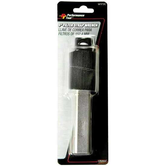 Range, Each – Performance Tool strap oil filter wrenches are versatile enough to get into tight spaces, while also grabbing filters in a wide range of sizes to remove or install. Just position the tough, no-slip strap over the filter, and then turn the chrome plated steel bar with a 1/2 in. ratchet for a tight grip around the filter.