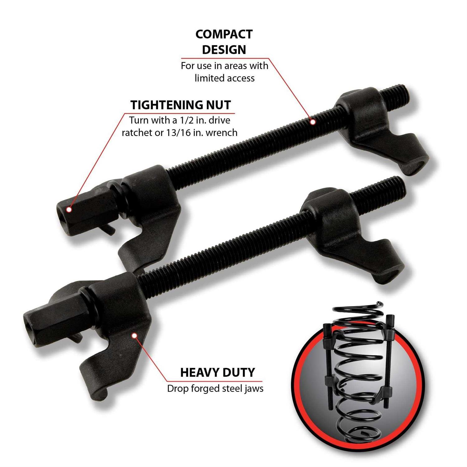 The Performance Tool Coil Spring Compressor, W80559, is a must-have tool for any automotive enthusiast or professional mechanic. Made with drop forged steel jaws, this compressor is built to last and can easily compress both strut and coil springs. Whether you’re working on a passenger car or a light duty truck, this tool is suitable for all your suspension spring needs. Upgrade your garage with this reliable and efficient coil spring compressor.