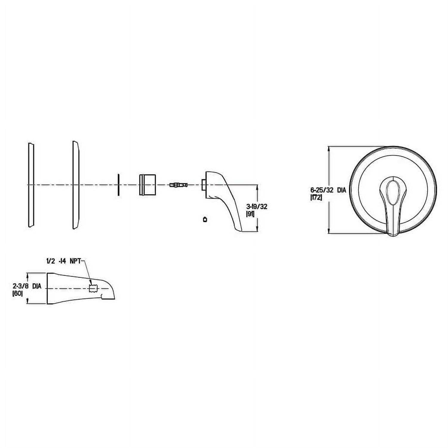 - Tub only trim features a 5-inch quick connect metal non-diverting tub spout