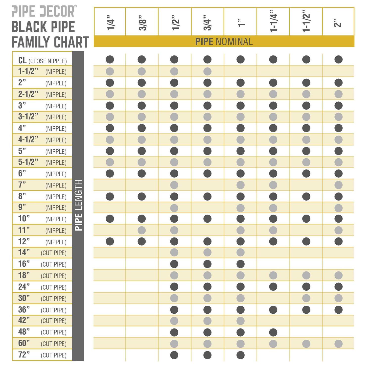 Black Pipe – PIPE DECOR pre-cut pipe can be used for either plumbing or decor installations. This is genuine schedule 40 black steel pipe that has been hydrostatically tested and is ASTM and ASME compliant. Each pipe comes pre-threaded, is free of any stickers, and comes coated in a light industrial oil to prevent rusting. Ideal for pipe decor, or use in standard gas, air, and liquid propane applications. Quality industrial black steel complements any aesthetic. IPS threads offer compatibility with other project materials such as lamp parts, valves, and more. Our PIPE DECOR line contains an array of fittings and connectors to create a variety of projects. Build your own or use with our pipe kits to achieve a custom look. Pipe will require cleaning and sealing prior to use. Authentic black steel gives your furniture a modern, industrial look Pipe is 100% schedule 40 black steel Can be used for plumbing applications in air, natural gas, and liquid propane, in addition to home décor Clean and seal instructions included Hydrostatically tested Meets all applicable ASTM & ASME standards; UL- & FM-listed Compatible with any pipes, fittings, and PIPE DECOR furniture kits of the same diameter PIPE, PIPE DECOR, 1 1/4 in. x 10 in. Black Pipe, pipes, steel pipes, black pipes, black steel pipes, piping, steel piping, black steel piping”