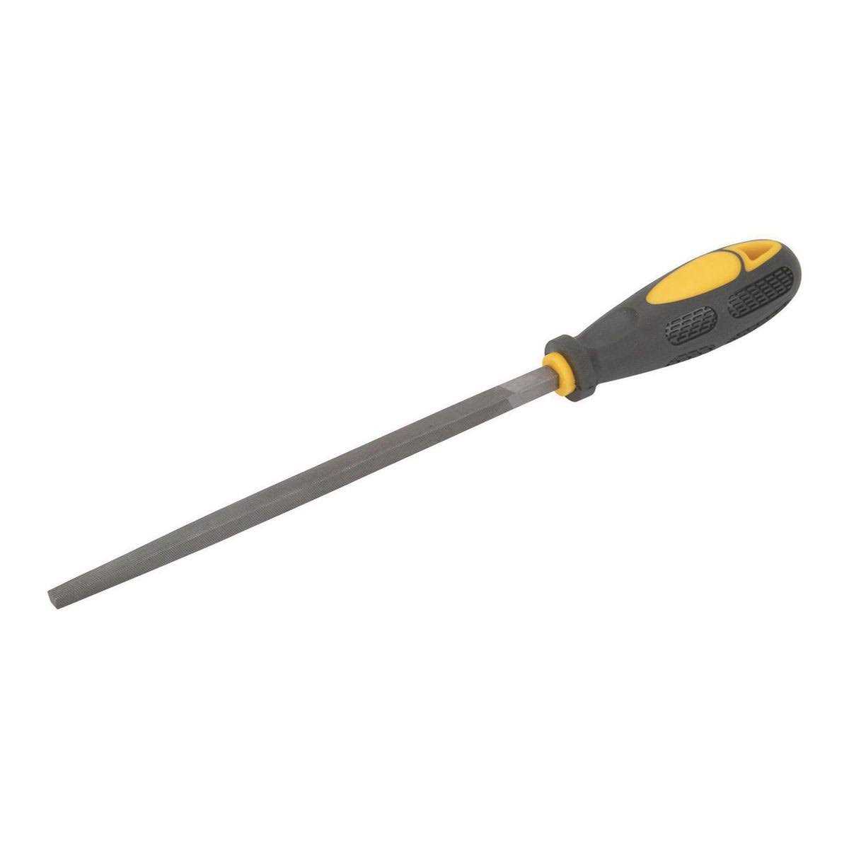 This classic square file is made of heat-treated high carbon steel for durability. Textured rubberized PVC handle for a firm grip.