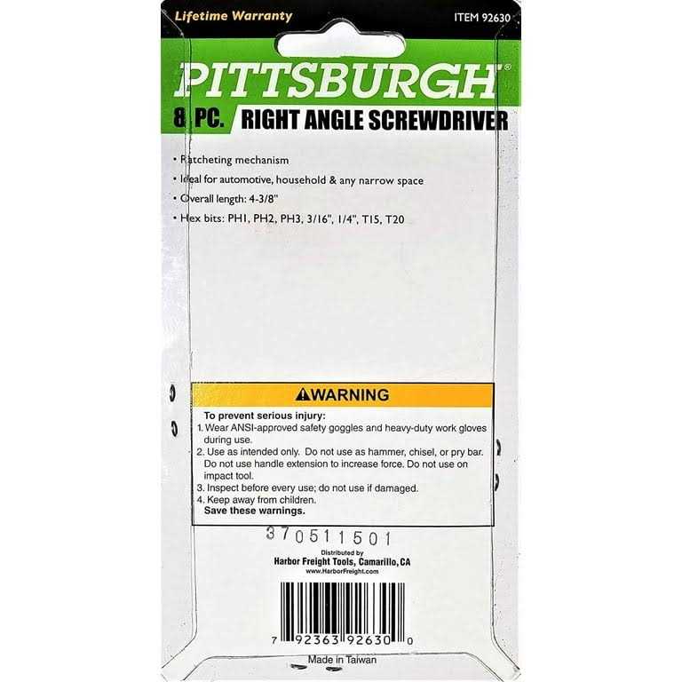Pittsburgh 8 Piece Right Angle Screwdriver Set
