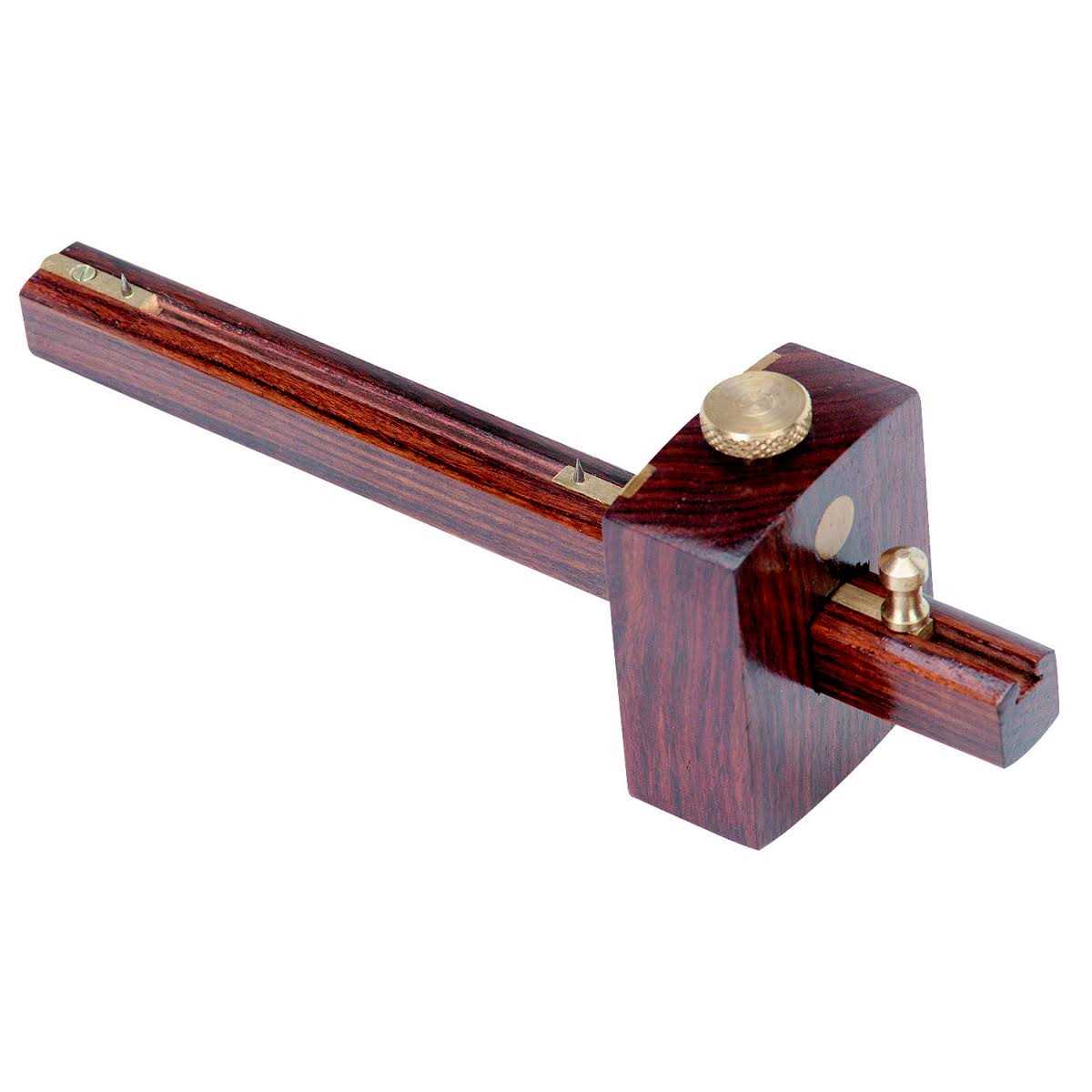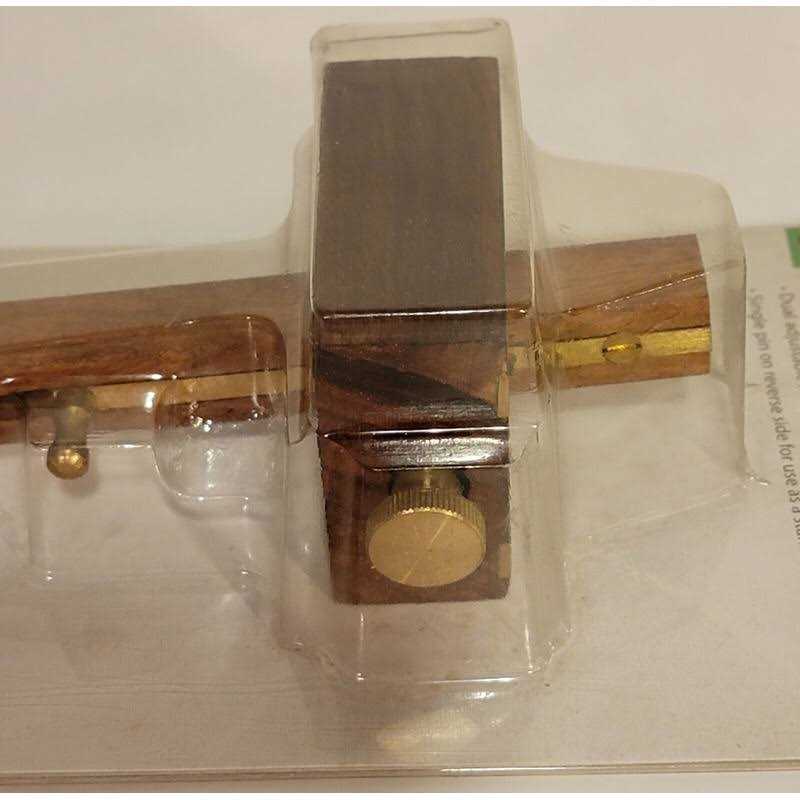 Description: Specialized combination tool works as a mortise gauge or marking gauge This versatile combination mortise gauge features dual adjustable hardened pins for marking both edges of a mortise. On the reverse side, a single pin serves as a standard marking gauge. The combination mortise gauge is made of polished hardwood with brass contact points and locking thumbscrew. Get consistently accurate, parallel lines with this handy woodworking (and metalworking) tool. Dual adjustable hardened pins for marking both sides of a mortise Single pin on reverse side for use as a standard marking gauge Brass thumbscrew locking mechanism Constructed from polished hardwood with brass contact points to prevent wear Specification: Material Hardwood Measures Up to 6 in. Product Weight 0.60 lbs. Product Width 2-1/2 in.