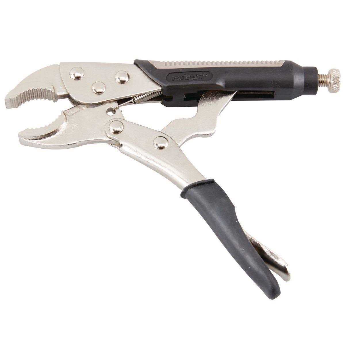 This curved jaw locking pliers set grips any style bolt or nut. The heat-treated carbon steel construction of this pliers set allows you to grip fasteners, pipes and more. Soft handles for comfort and control.