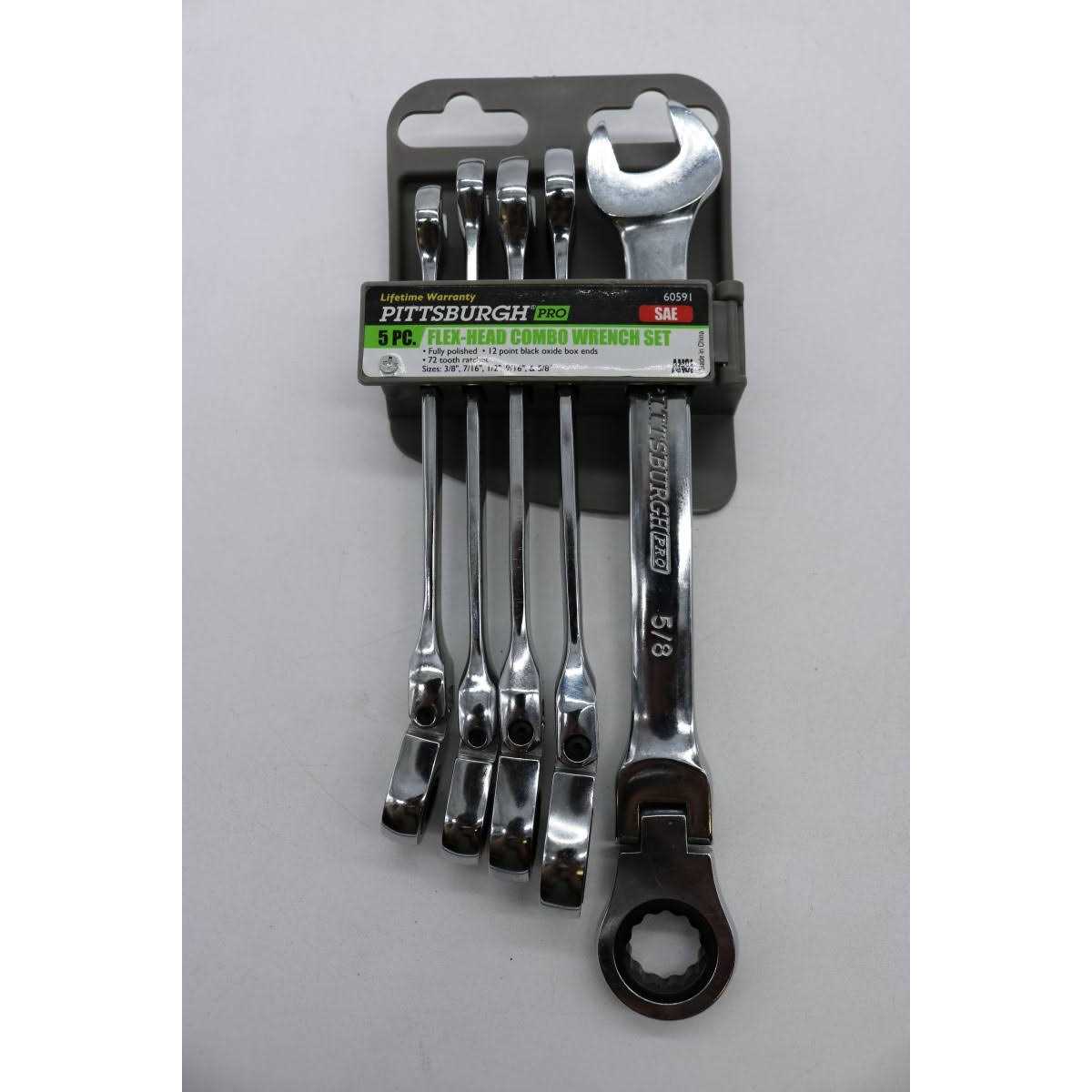 Pittsburgh Tools 60591 5pc SAE Flex-Head Combo Wrench Set