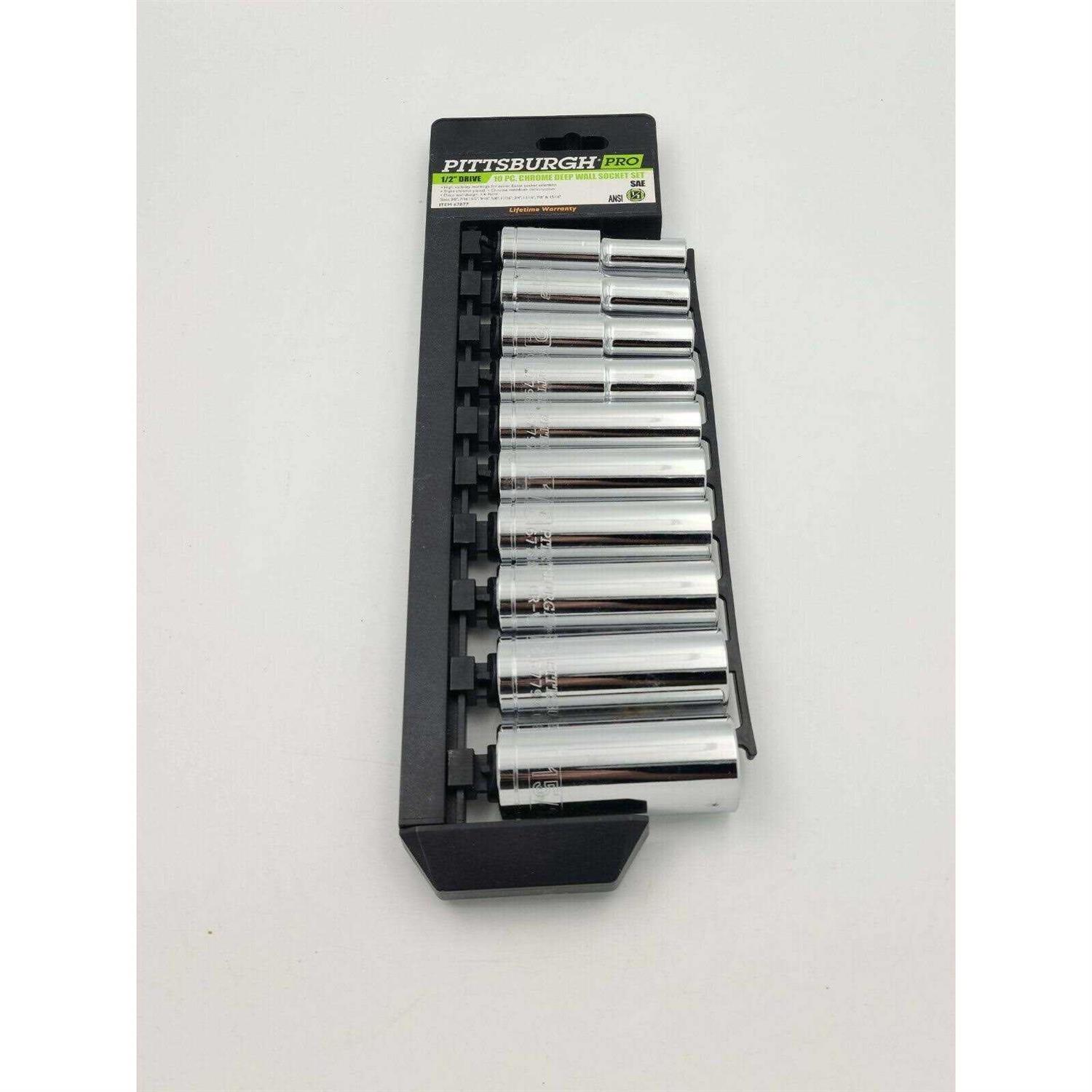 Pittsburgh 67877- 10 PC 1/2 in. Drive SAE High Visibility Deep Socket