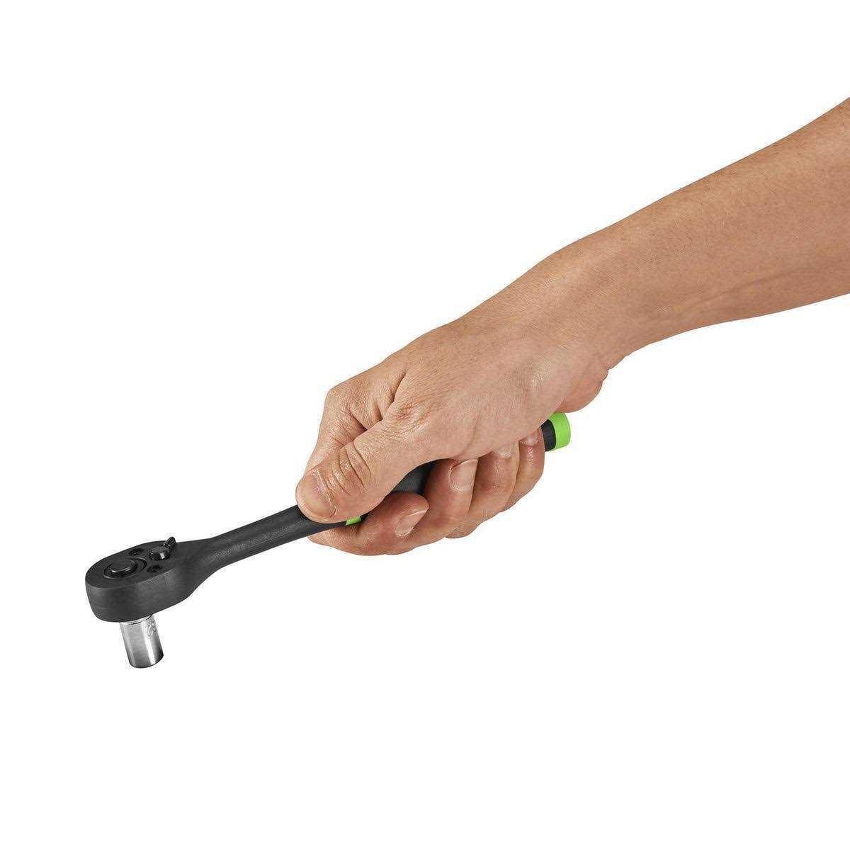 This 1/4 in. composite ratchet wrench is a great tool for everyday use. The 72-tooth ratchet is made of chrome vanadium steel for long performance life. The tough polypropylene jacket makes this ratchet handle nonslip, nonmarring and nonconductive – making it ideal for working near auto battery terminals.