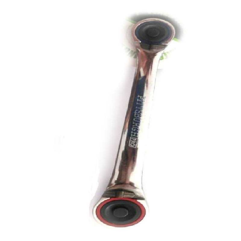 This double head ratchet wrench lets you use 1/4 in, 3/8 in. sockets with one compact ratchet handle. Constructed of rugged chrome vanadium steel, this ratchet wrench handles even the most stubborn and corroded nuts and bolts with ease. Smooth turning 72 tooth pawl mechanism Heavy duty chrome vanadium construction Mirror polish.