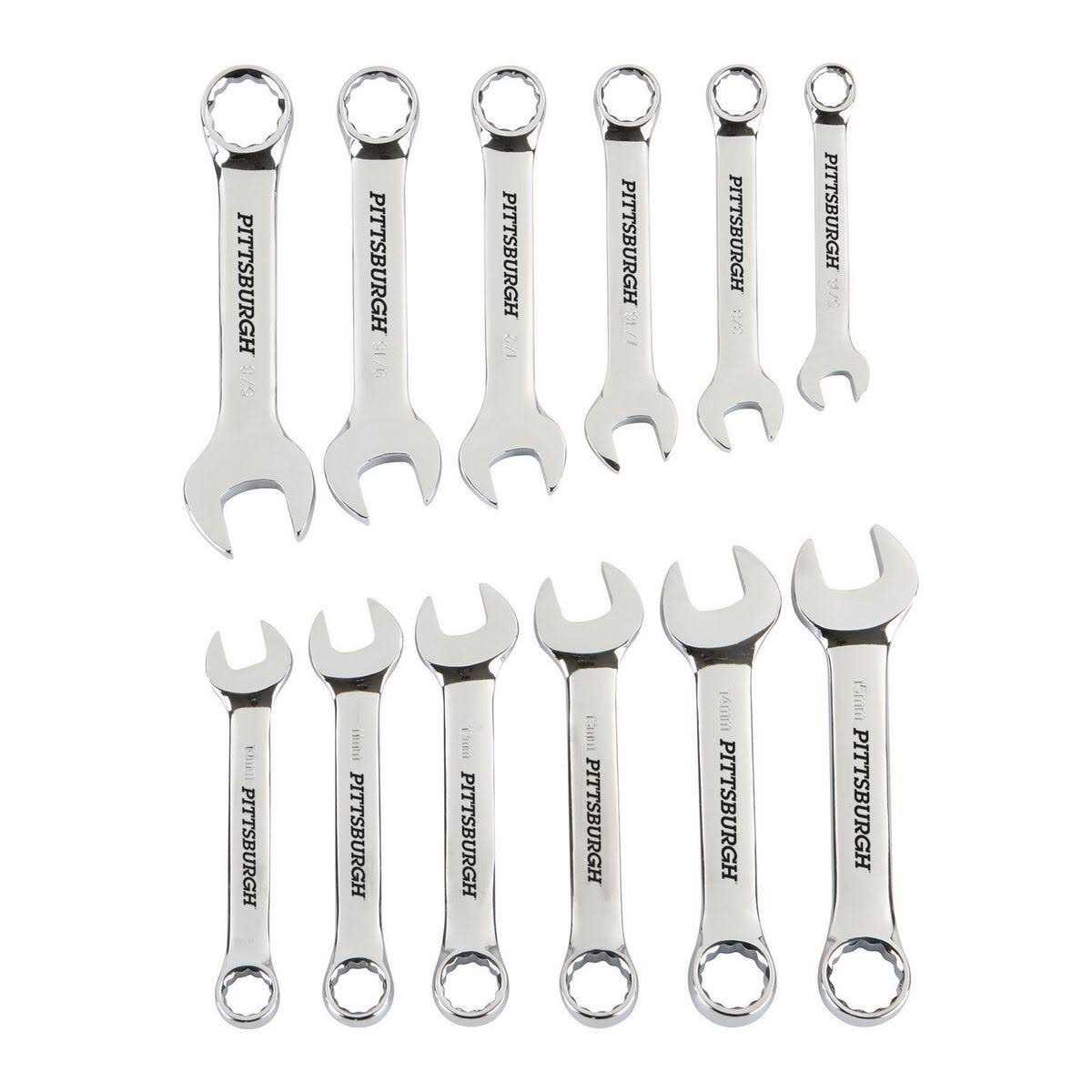 Pittsburgh Stubby SAE and Metric Combination Wrench Set