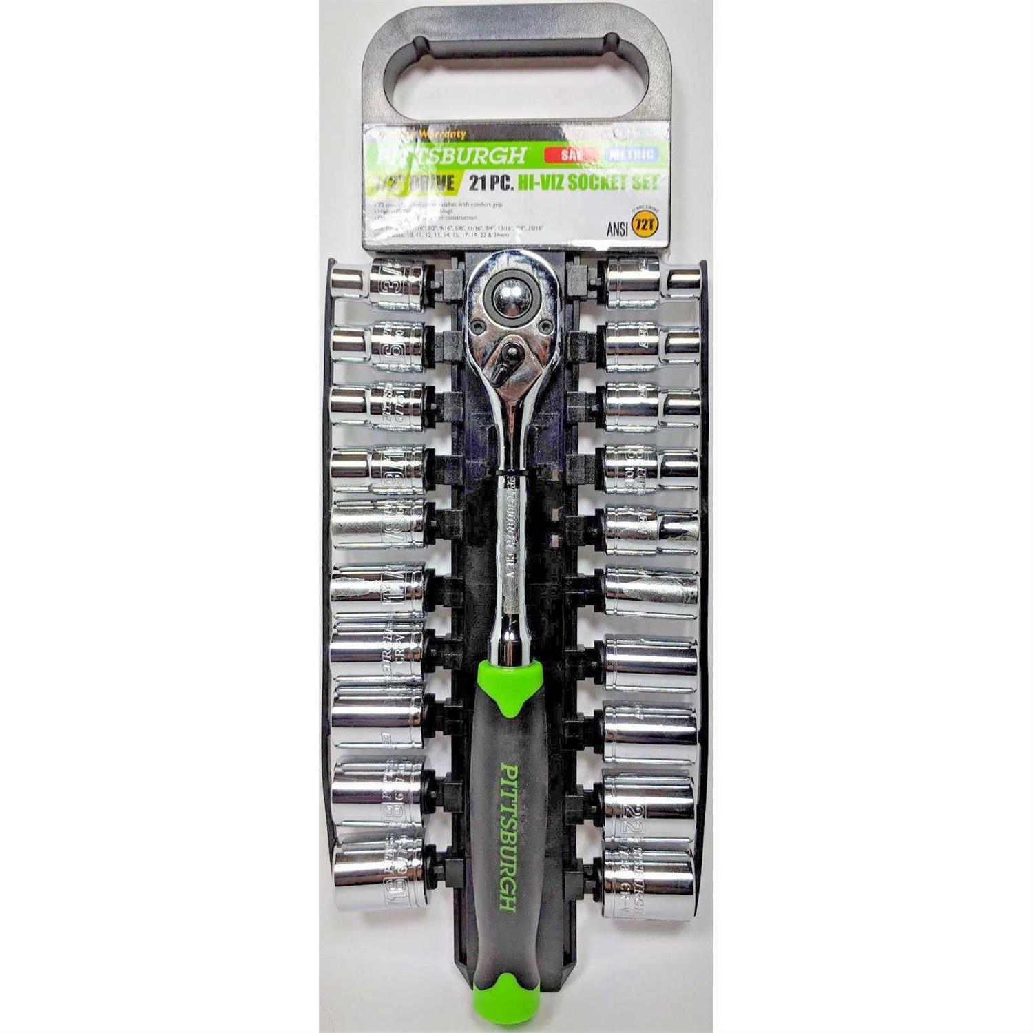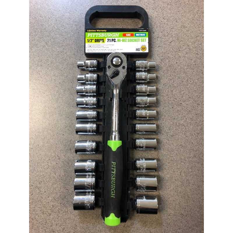 Pittsburgh 21 Piece High Visibility 1/2″ Drive SAE/Metric Socket Set