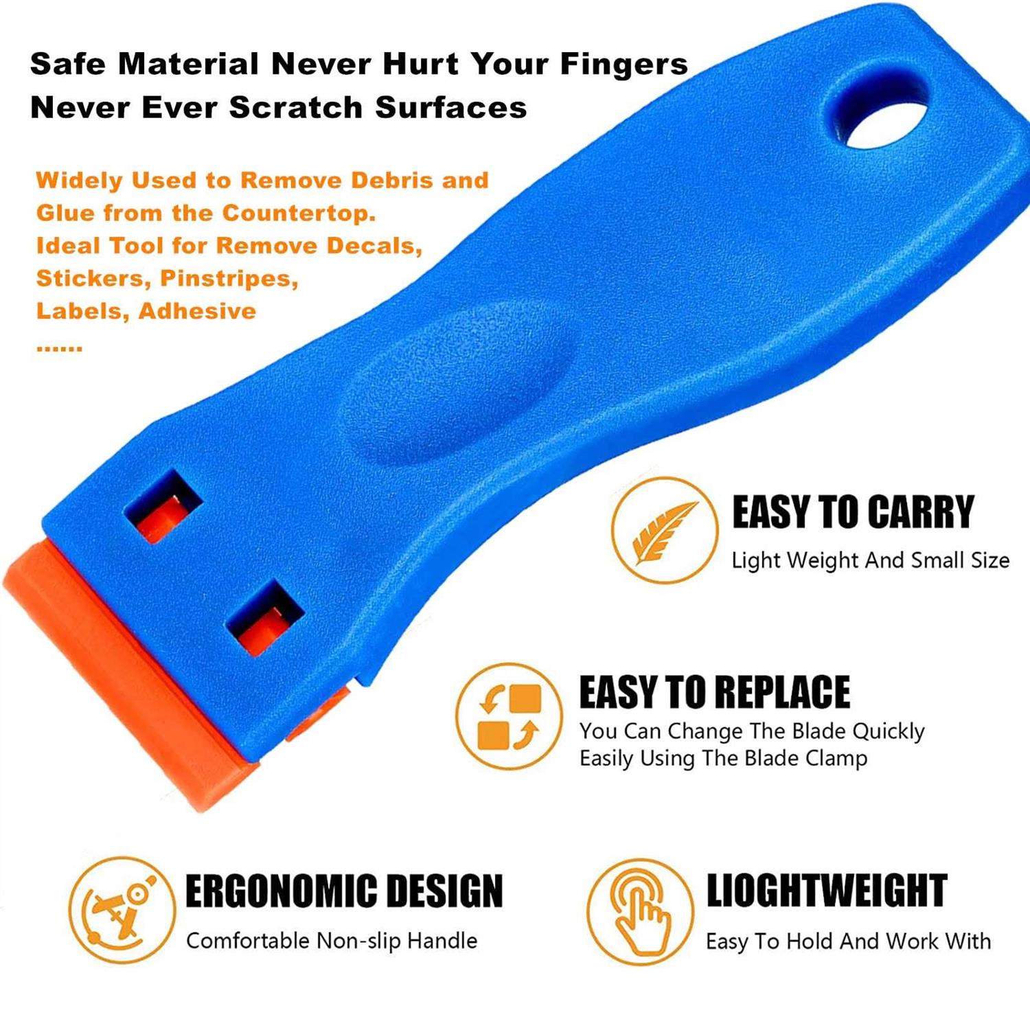 Plastic Blade Scraper 2PCS Razor Scraper Tool 50PCS Double Edged Blades