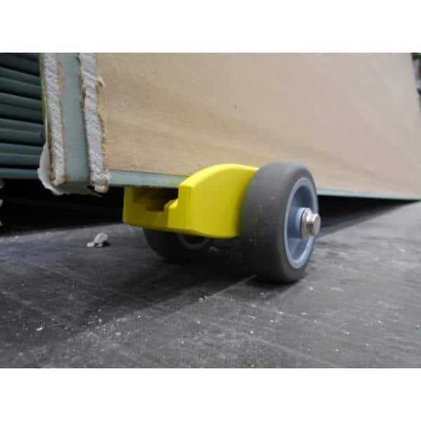 Easily move 1-sheets or 2-sheets of plywood, drywall, or any other sheet material. Picnic tables, marble slabs, metal sheets, anything that fits into the slots. Carries up to 280 lbs. Slot widths are 1/2 in., 3/4 in., 1 in., and 1-1/4 in. High-quality plastic construction for enhanced durability Helps move plywood sheets, drywall, marble slabs, and more Designed to handle a maximum load of up to 280 lbs. Easily move sheets of plywood or drywall On your belt or in your tool box Can carry 280 lbs. Save your back by rolling your material instead of carrying it Complete all your hardest work easily with Plywheels Plywood and Drywall Cart with capacity. Save your back by rolling your material instead of carrying it.