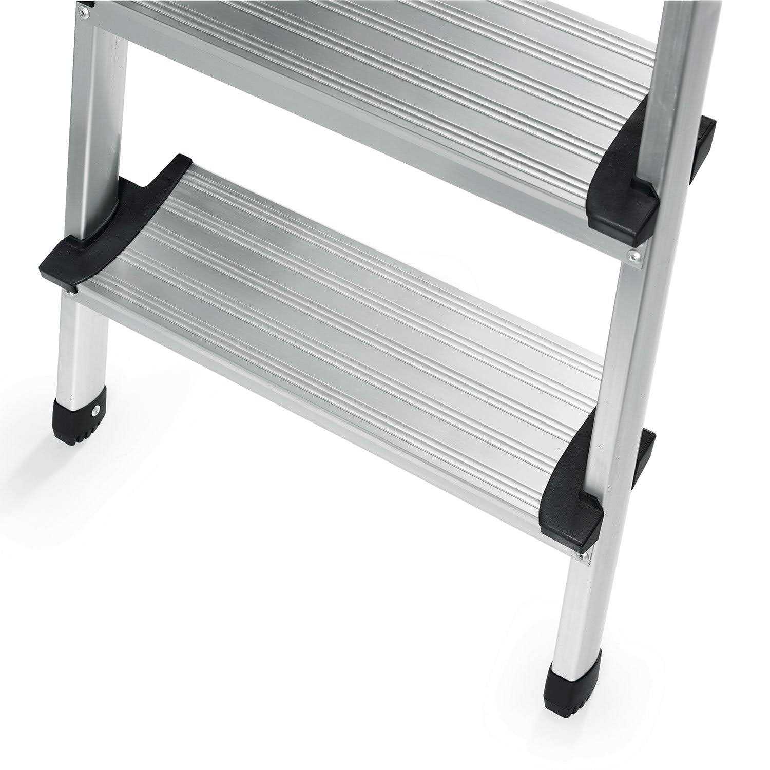 Lightweight aluminum construction weighs only 7.5 lbs. (3.6 kg) Safety latch registers to securely hold ladder in open position 5″ step design with non-skid treads for comfort and secure footing 225 lbs. (102 kg) maximum weight capacity; 24.5″ to top step Folds flat to 5″ thick and 71″ tall Product FeaturesAnodized aluminum alloy framelight weight construction, weighs 7-1/2-poundsnon skid rubber feettop step has safety latch5-Inch deep steps with non skid treads Polder has been offering everyday products with extraordinary design since its launch. The company was established in 1976, delivering better quality European-styled housewares to the U.S. market. Polder found early in success in ironing and storage, and also launched the industry’s first line of digital in-oven thermometers, equipped with a long cord so consumers could digitally monitor food without removing it from the oven. Through the years, Polder has built an eclectic collection of core home categories, including kitchen timers and thermometers, laundry and ironing products, kitchen scales, and a variety of other storage solutions. Polder products are tested and certified for their consistent high quality by independent standards labs.