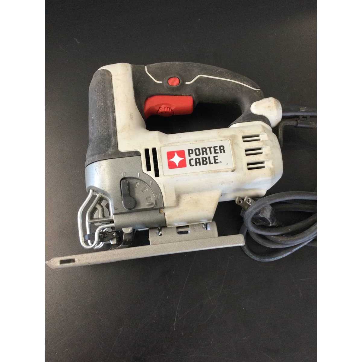 Porter cable 6.0 Amp orbital jig saw is designed with a 7 position speed-dial integrated into the trigger which provides multiple speed settings for optimal cutting results. The 6 amp motor delivers more power in demanding applications and the 4 orbital settings provide best cutting performance in a variety of materials. Offering a lock-on button for easier control this jig saw helps diminish user fatigue over prolonged usage. In addition an over-sized over-mold on the front and handle provides greater control and comfort during use. This jig saw offers tool-free blade changes to make blade replacements quick and easy ultimately resulting in minimized down time. Features 7-position speed dial 0 to 3200 spm integrated into trigger provides multiple speed settings for optimal cutting results amp motor delivers power for demanding applications. 4 Orbital settings provide best cutting performance in a variety of materials. Lock-on button provides easier control during prolonged use. Oversized over-mold on front and handle offer greater control and comfort during use. Keyless blade change clamp makes blade replacements fast and easy.