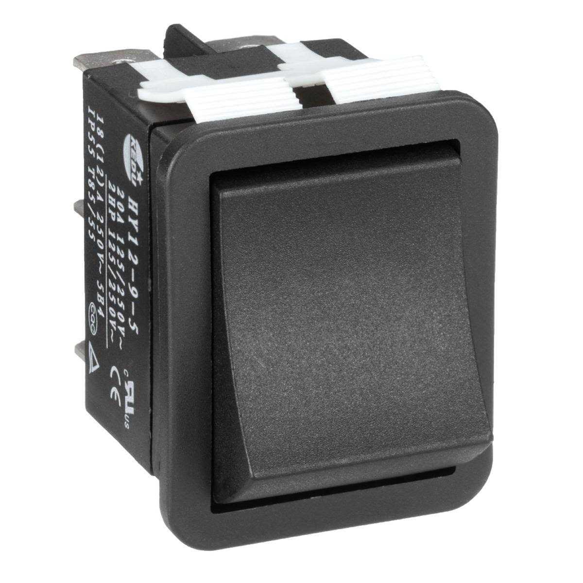 20 A Switch Rating @ 125V; 20 A at 125V Resistive Current; 1/4 in Quick Connect Tab Termination Style; 20 A at 250V Resistive Current; 21.6 mm Overall Width; 39.2 mm Overall Height; 3 Number of Positions; 6 Number of Connections; 6000 Electrical Operating Life Cycles; Rocker Switch Actuator Type; Polyamide Actuator Material; Black Actuator Color; DPDT Pole-Throw Configuration; Maintained Switch Action; 2 hp at 125V AC Output Power – Single Phase; 2 hp at 250V AC Output Power – Single Phase; On-Off-On Switch Function; Copper Contact Material; Silver Contact Plating Material; 0.05 ohms Contact Resistance; Single Phase; Yes Prewired; Snap-In Mounting Style; 1.16 in Mounting Hole Length; 0.87 in Mounting Hole Width; Non-Illuminated Illumination; AC Current Type; 2 Number of Poles; 250V AC Voltage; 149 ° F Maximum Operating Temperature; 32 ° F Minimum Operating Temperature; UL Listed Specifications Met; Yes RoHS Compliant; Standard Body Style; Thermoplastic Body Material; Black Body Color; 54 IP Rating; Household Electrical Appliances Application; China Country of Origin