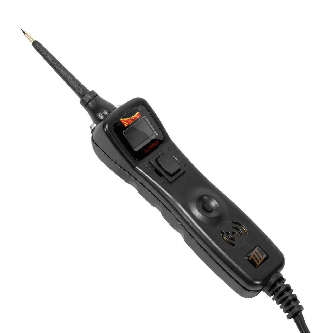Easy to read backlit Voltmeter allows you to read voltage at the tip eliminating wasted time running to your toolbox for a voltmeter! 42V Ready right out of the box prepares you for the future now! When you connect the Power Probe to the car’s battery you have a multitude of testers at your finger tips. Press the rocker switch forward and you’ll have a hot lead for powering up electrical components like cooling fans, relays, press the switch rearward and you will have an instant ground lead. Simultaneously use the hot lead and the ground lead to activate components right in your hand. The polarity tester instantly identifies positive, negative and open circuits without having to re-polarize or reconnect hookup clips like with ordinary test lights. Power Probes circuit breaker helps you to follow and locate shorts fast without wasting fuses. Instantly check continuity of switches, relays and diodes. Tool only in clamsheel pack. Accessories sold separate.
