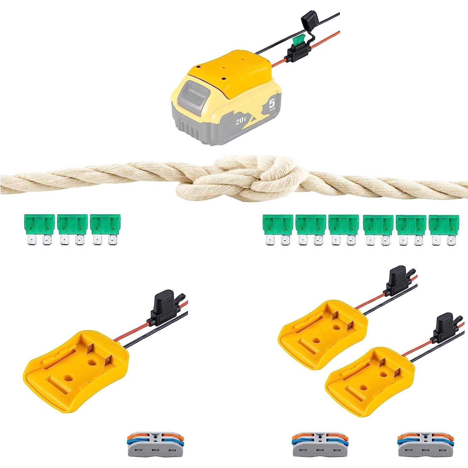 Power Wheel Adapter for Dewalt 20V Battery with Fuse & Wire terminals,Work with for Dewalt DCB205 DCB206 DCB200 Lithium Battery;Power Wheel Battery
