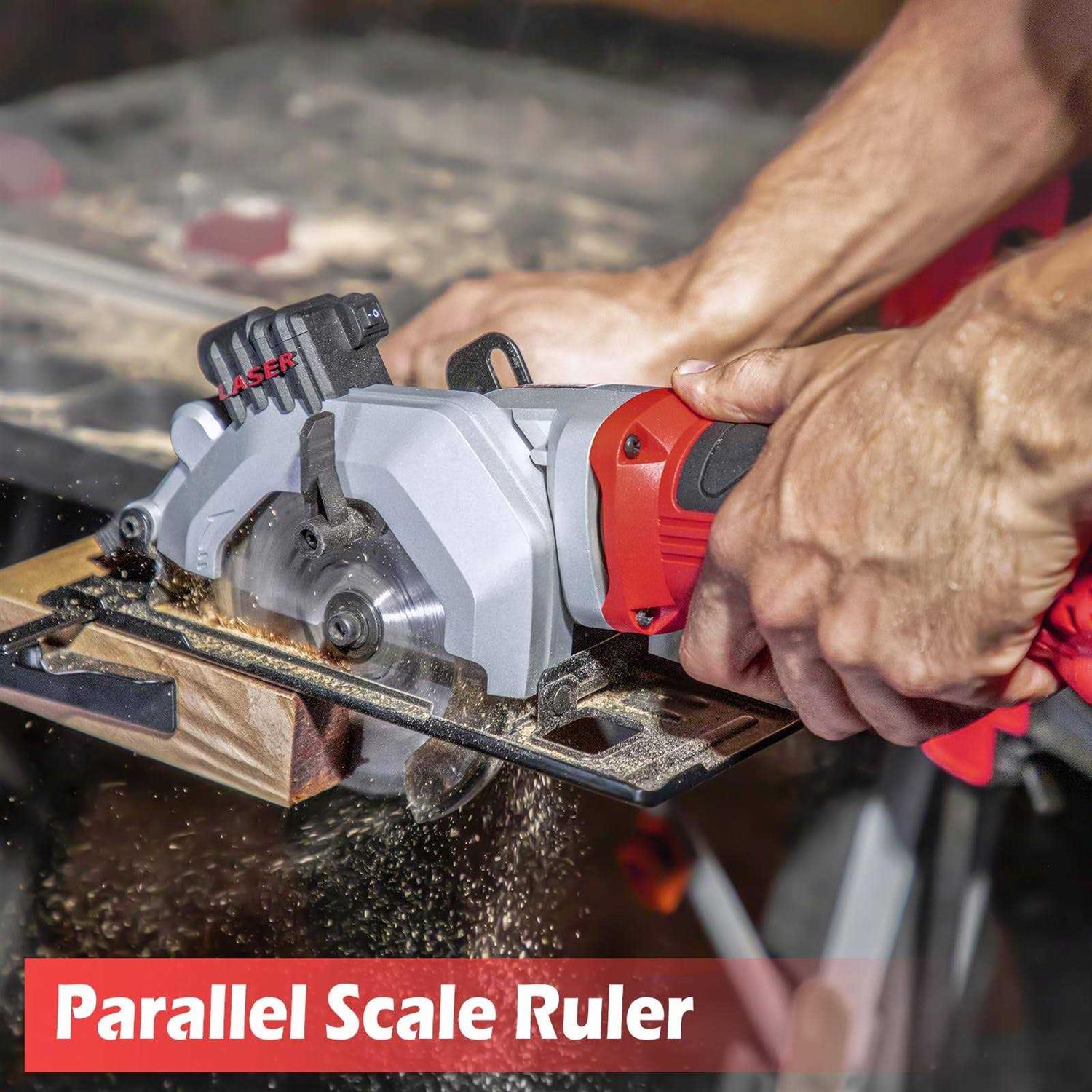 - Package Include: 1* Mini Circular saw, 2* 4-1/2 inch 24T Saw Blade, 1* Dust Exhaust Pipe, 1* Scale Ruler, 1 – Hex Wrench, 1 – User Manual.