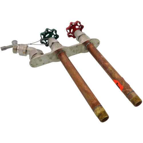 Prier C-108 provides a year round source of tempered water in areas that are subject to freezing temperatures. The hydrant valve is connected to the supply piping in the heated portion of the structure, eliminating the possibility of freezing. Unique to its patented design, the same product can be installed horizontally or vertically. Ordering the C-208 gives you the same style hydrant but with vandal proof extended lock shields with operating key on both hot and cold stems. The Prier C-108 has all the characteristics of the historically proven C-134 with the added protection of a self-draining anti-siphon vacuum breaker and backflow check valve.
