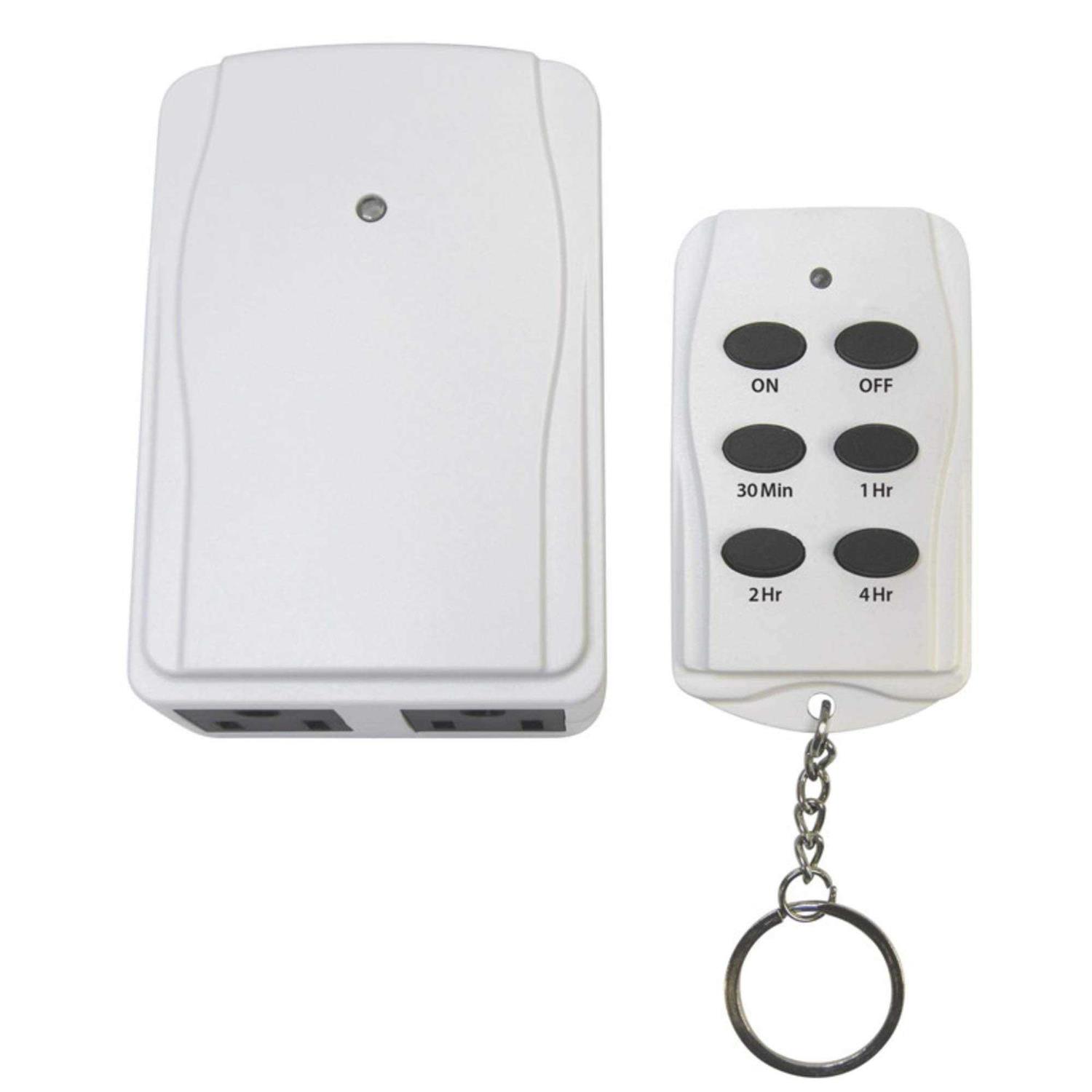 Prime introduces this indoor timer with a remote control that has two grounded outlets. The remote control functions of this timer are On, Off, and then On with a countdown 30 minutes timer, 1 hour timer, 2 hours timer, and 4 hours timer. This programmable time boasts a white tone.