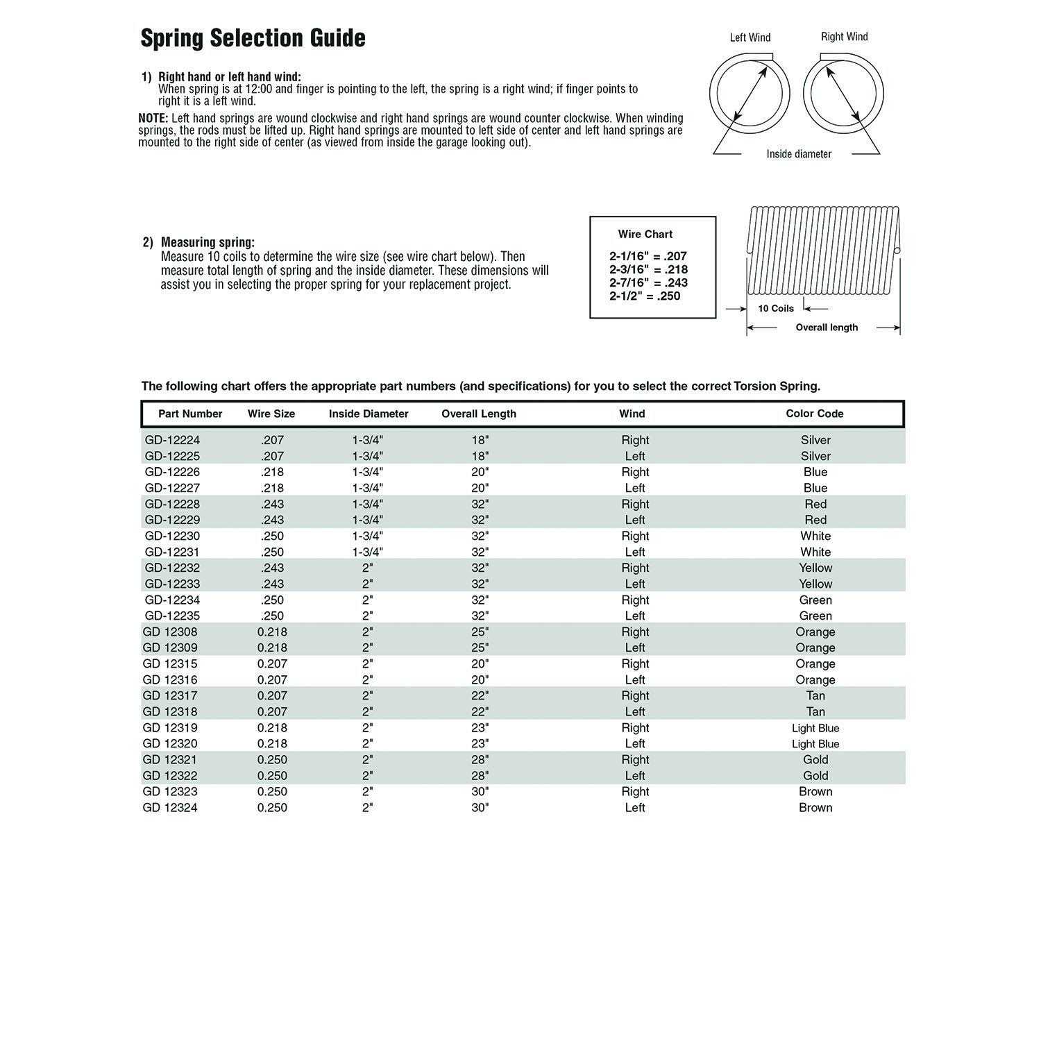 - RIGHT-HAND wind springs are mounted to the left of center (as viewed from the inside the garage looking out)