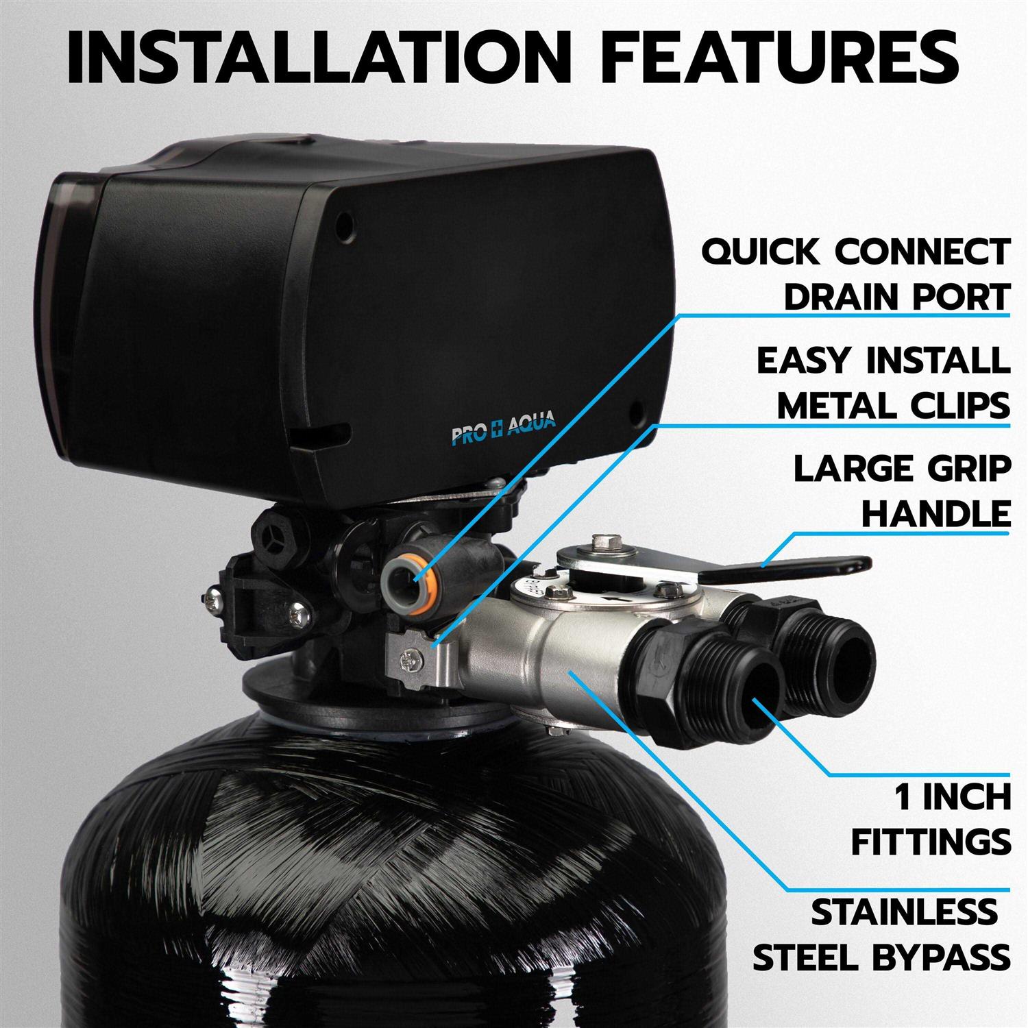This Whole House Well Water Filter System provides unmatched filtration performance. Instantly eliminate odors and iron red/orange stains in your bathroom stains in your laundry copper lead uranium radium radionuclides heavy metals and many other contaminants that are bad for your health. The small footprint of this well water system allows it to fit in many water closets in basements or next to your water heater. Outdated well water systems and iron filter systems such as air injection and dosing pumps consist of either 2 separate tanks using a Venturi valve or having a tank full of harmful chemicals costing more money and expensive maintenance. The advanced digital valve of this system allows for a maintenance-free and worry-free operation. The system automatically cleans itself without the need for chemicals. The system traps all contaminants and then backwashes out the drain every few days. There is no downtime or tanks to fill with harmful chemicals. This Whole House Well Water Filter System comes complete with everything you need to install. This system includes an Advance digital valve 1 in. port stainless steel bypass 1 in. port yoke two 1 in. male adapters two 18 in. flex connectors media pressure tank filtration media prefilled small parts and manual. Color: Black.