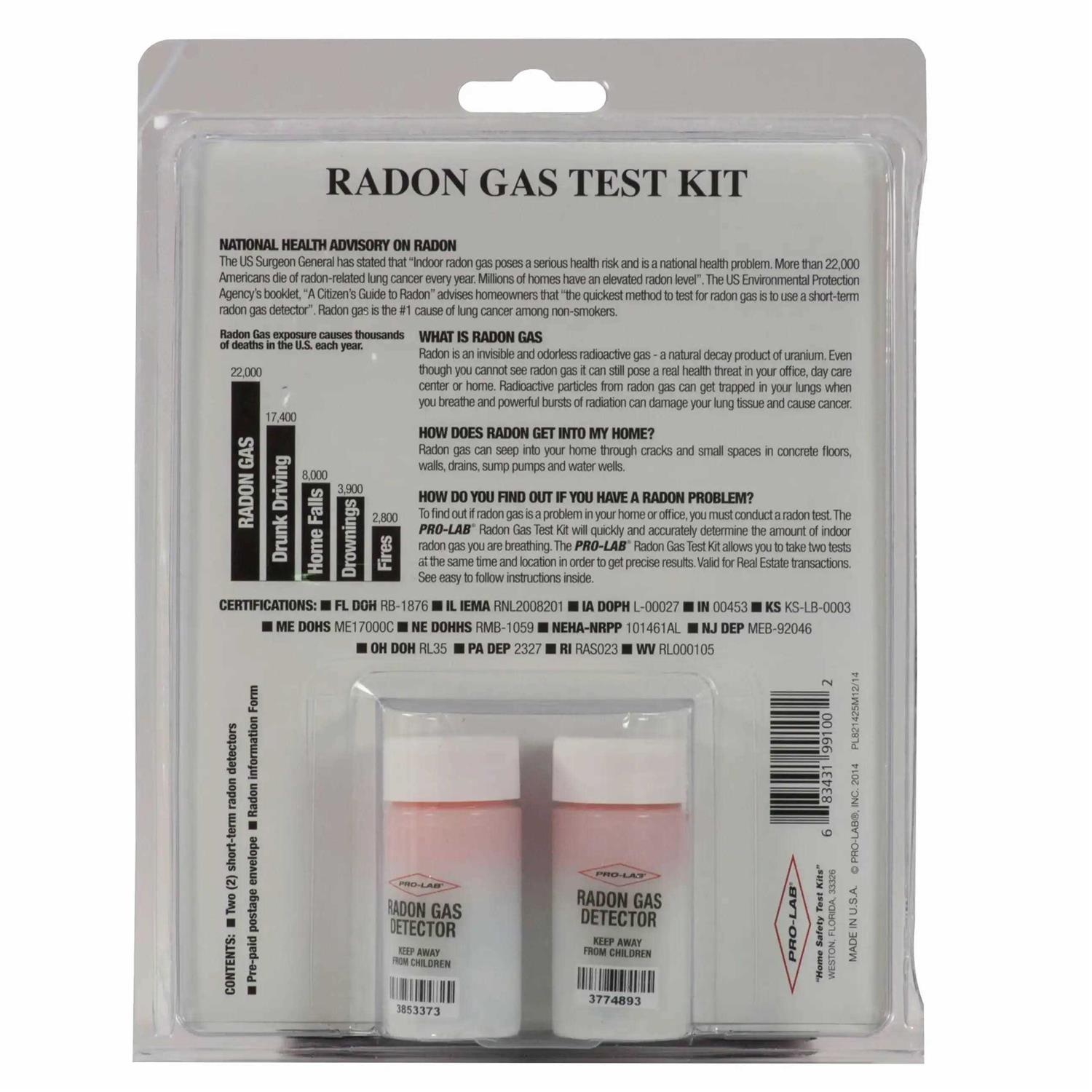 Simple to use DIY test kit has 2 separate detectors for more accurate testing of the invisible and odorless gas. Kit includes: 2 short term radon detectors, PPD postage envelope, and radon data card. Receive standard results within 1 week (additional lab analysis fee). No. RA100: Lab Results: 1 Week, Utilizing Technology: Outside Lab, Pkg Qty: 1, Package Type: Box.