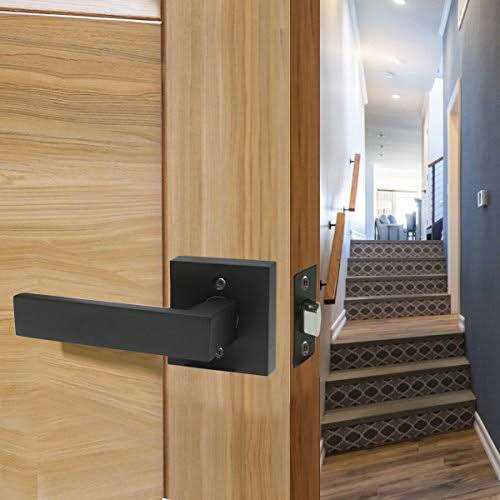 Probrico 10 Pack Square Door Lever Door Lock Handle Lockset Keyless Doorknobs Passage Knobs Lockset Interior Hallway Passage Closet Black