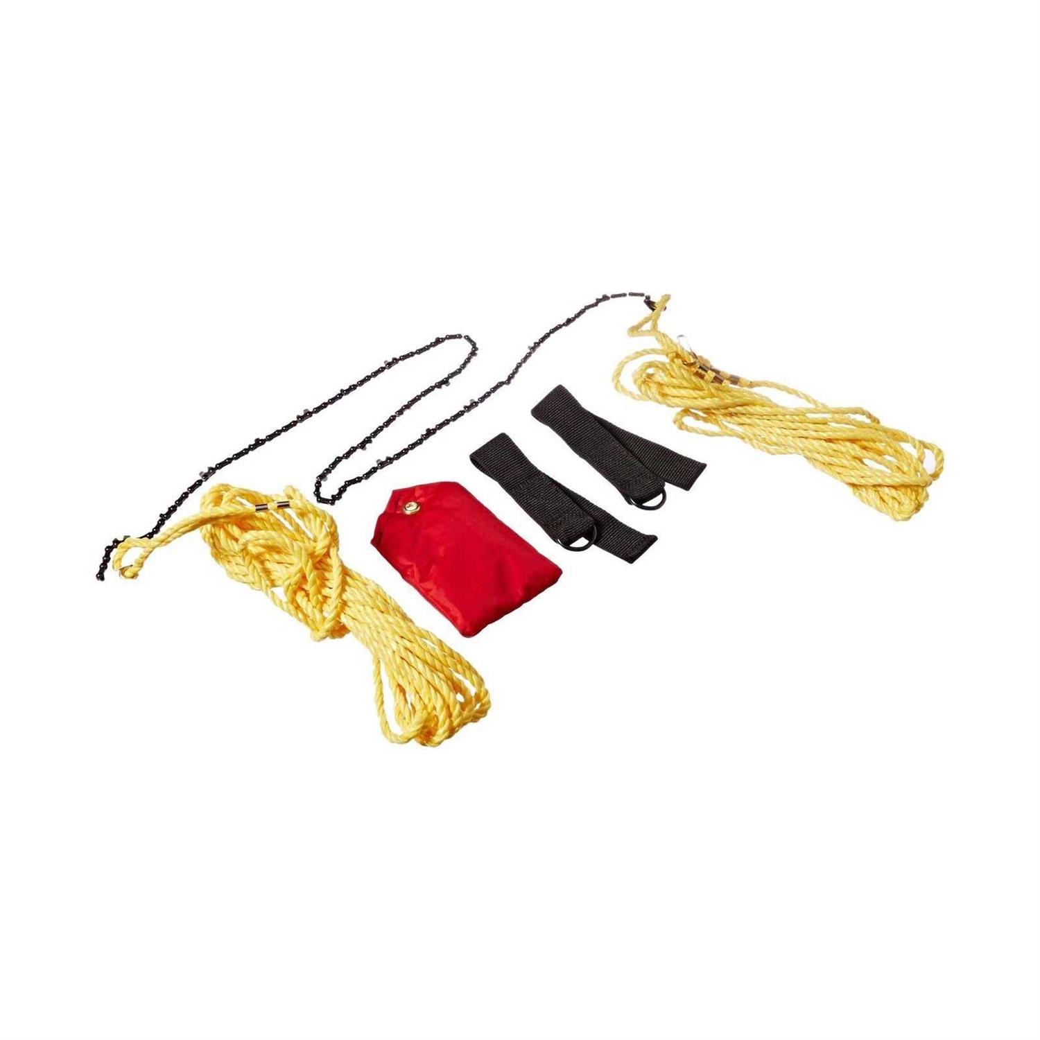 Each saw features a patented 48-inch high carbon steel Bimatic chain blade designed to wrap around tree limbs and cut them off as it is drawn back and forth. Attached to the ends of the blade are two 7.6m control ropes. Just toss the weighted end of the rope over the limb pull the blade up into position then pull back and forth on each control rope. The 121.9cm blade is suited for big cutting jobs limbs as large as 35.6cm or greater in diameter. Directions as well as sturdy hand straps are included. Cuts high limbs safely and easily from the ground. Cuts limbs 25-feet, or add more rope for higher cuts. Pays for itself in the first few uses. Trims your neighbor’s overhanging branches. Provides sunny areas to shaded gardens.