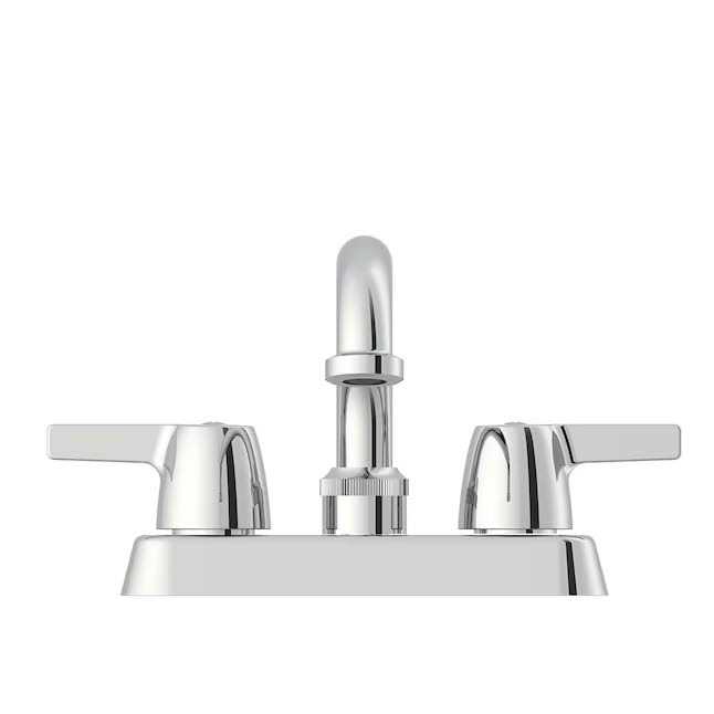 Chrome finish laundry faucet. 4-In centerset for easy installation. High-arc spout provides added sink space. Washerless cartridge ensures a reliable flow of water. Fits standard 3-hole sink application.
