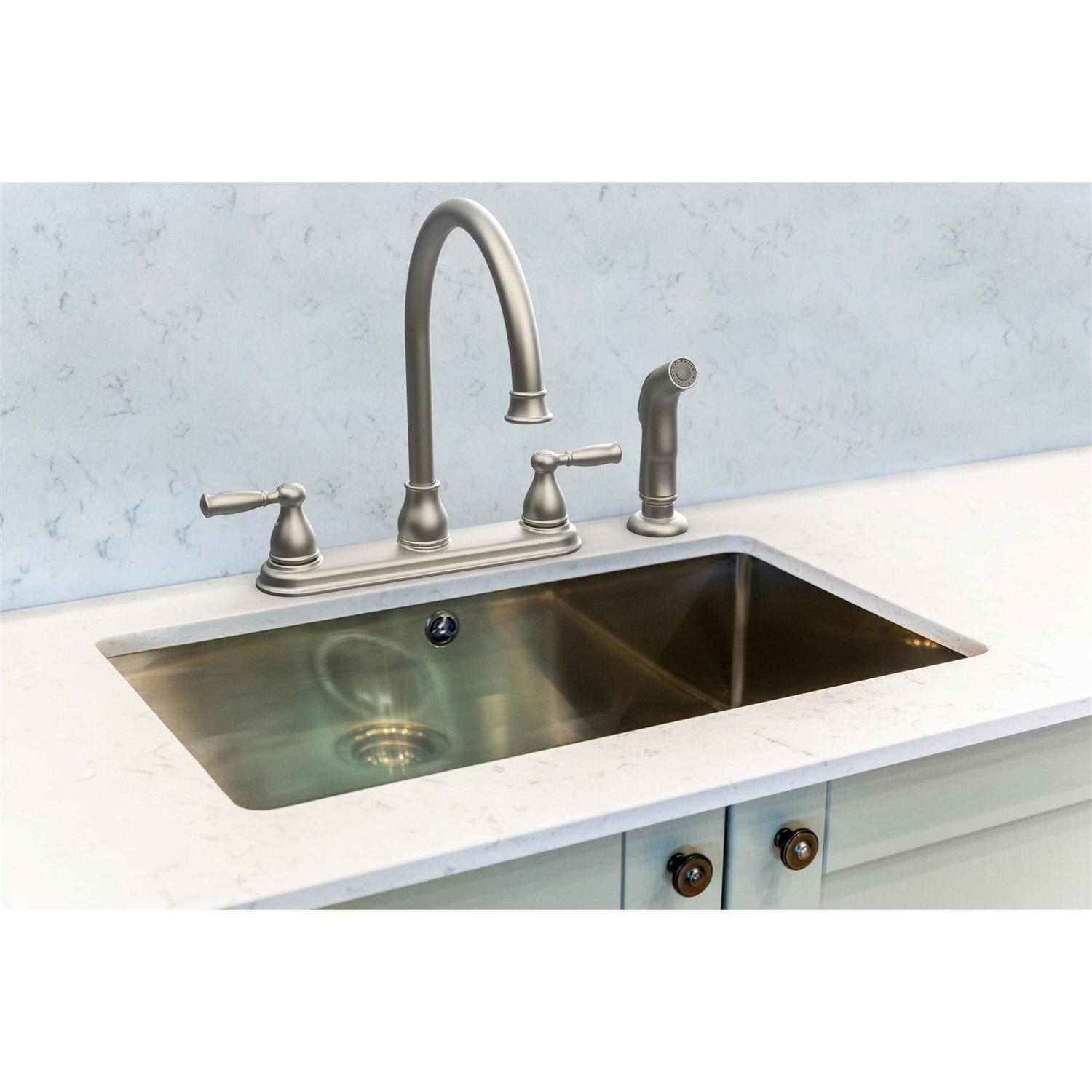 Project Source Brice Stainless Steel 2-Handle Deck-Mount High-Arc Handle Kitchen Faucet (Deck Plate Included)