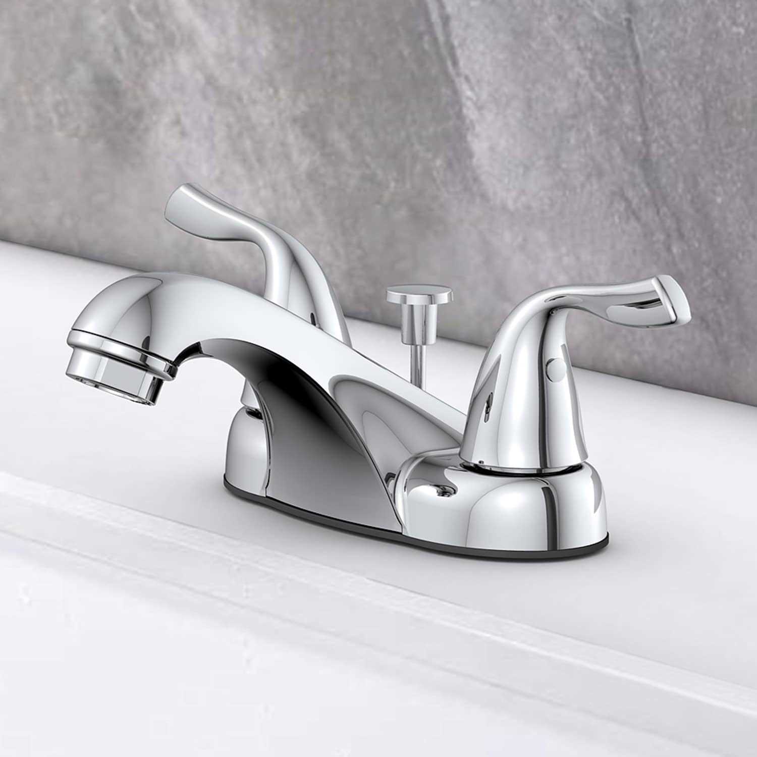 Be the first to review “Project Source Webber Chrome 4-in centerset 2-handle WaterSense Bathroom Sink Faucet with Drain and Deck Plate 4012460C-L”
