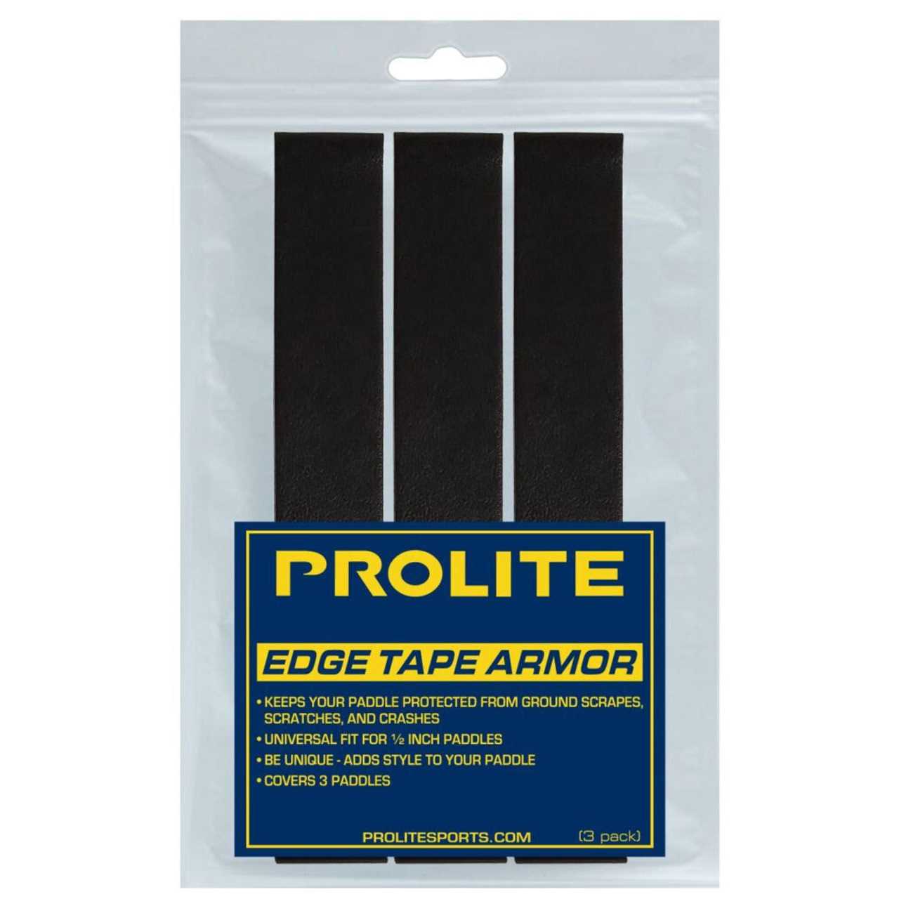 The ProLite Edge Tape Armor protects your paddles edge against accidental scratches and scrapes while you play. If you want to extend your paddles lifespan protecting the edge is very important. Edge Tape Armor is a small investment but a much better way to keep your paddles edge safe than just plain electrical tape. It is also a great way to cover lead tape that you have used to add some weight to your paddle. There are three 31.5` long strips and 1/2` wide. Keep your paddle protected with Armor.