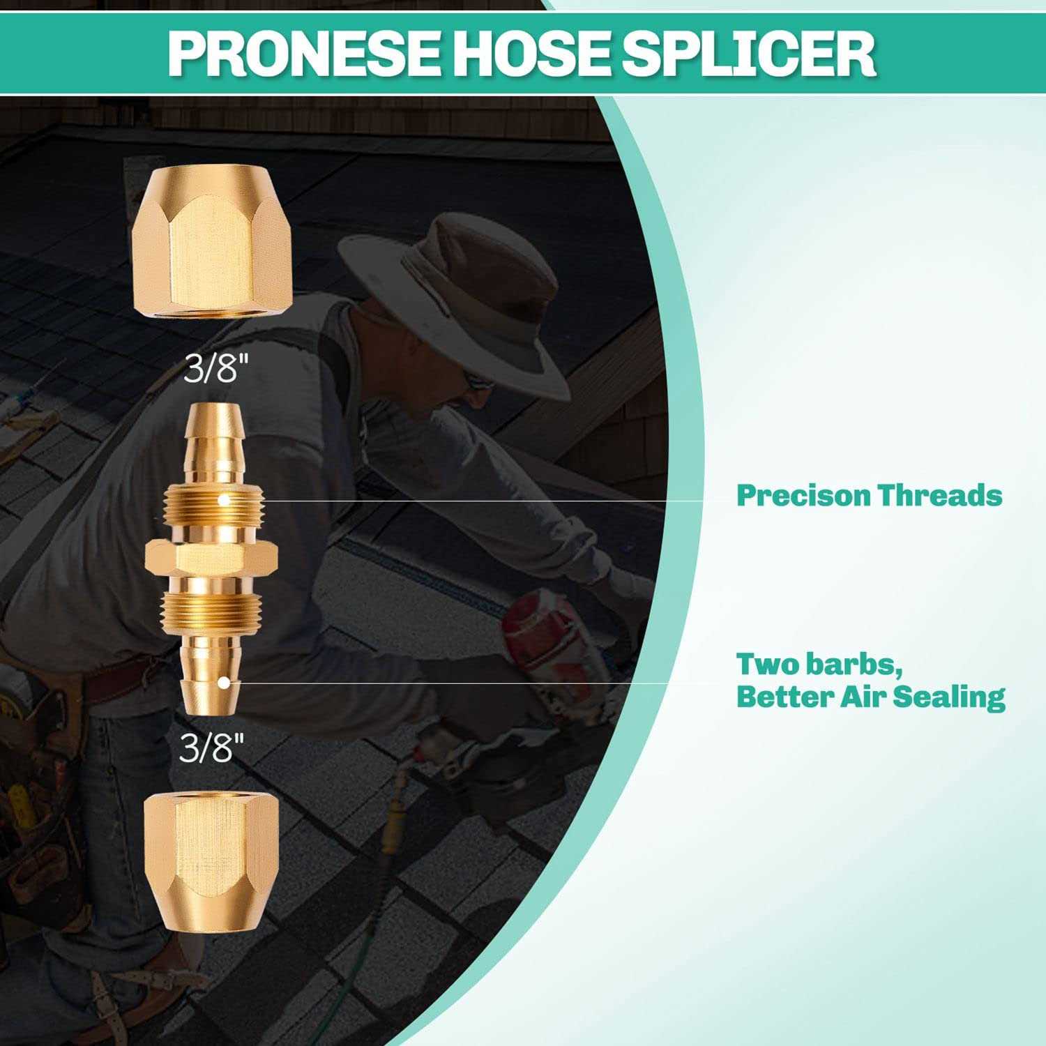 Pronese 4 Pack Soild Brass HPT Air Reusable Hose Splicer Repair Kit,Air Hose Fitting for 3/8-Inch ID Hose